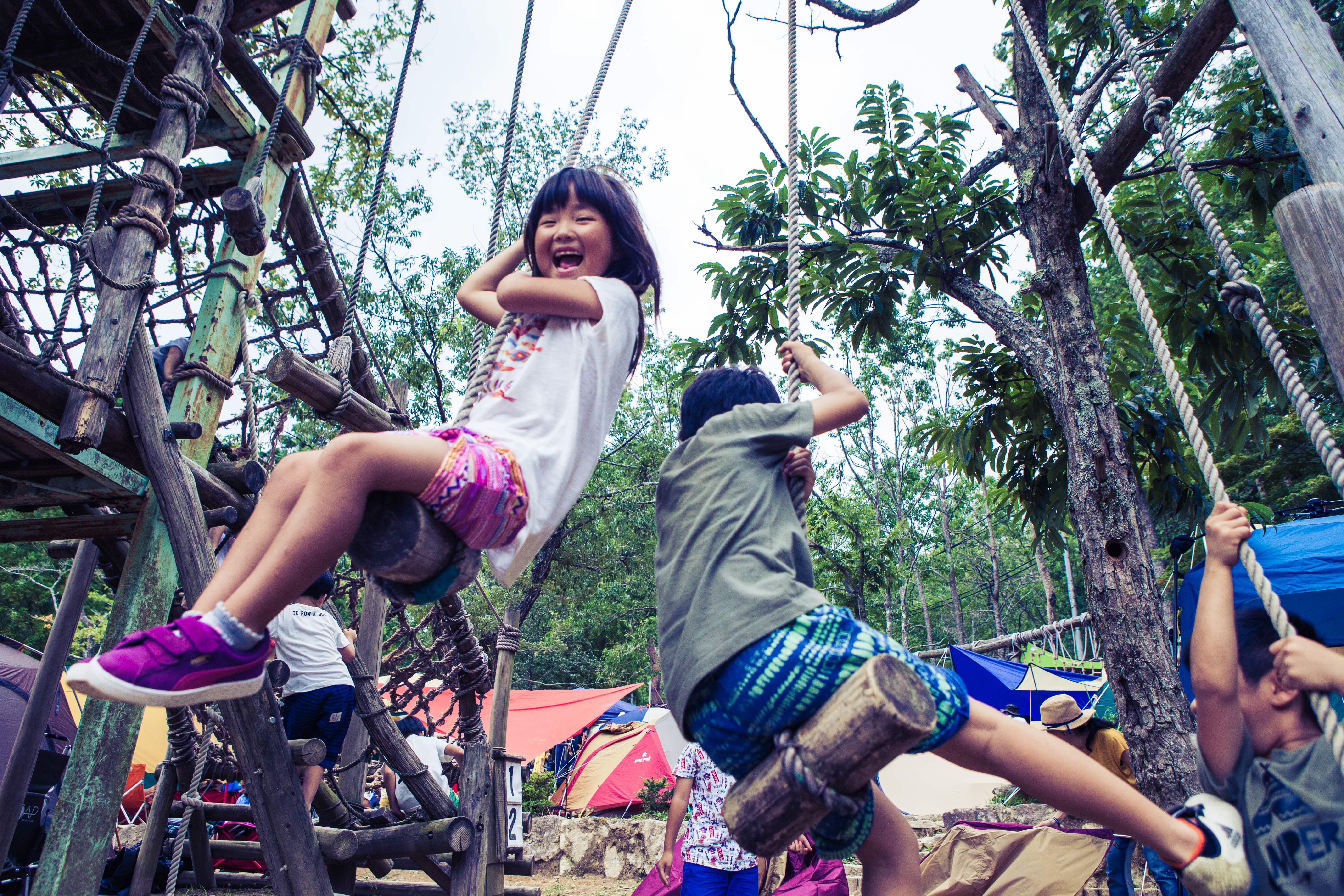 Children playing on some of the athletic equipment found at the festival. (Image credit: Maeda Hiroshi)