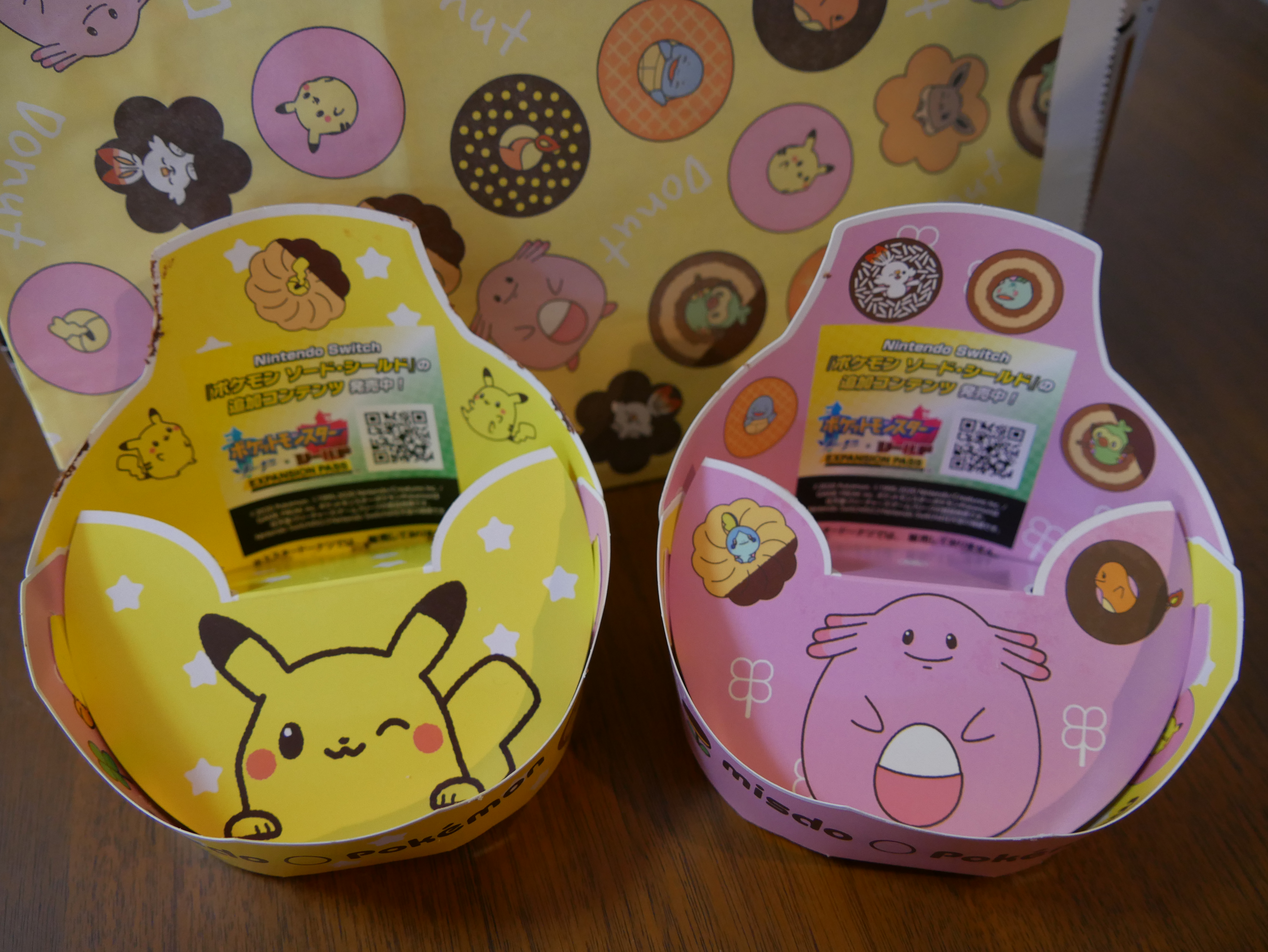 The Pokémon doughnut were larger than expected and come in adorable cardboard stands promoting the newest Sword and Shield Pokémon game.