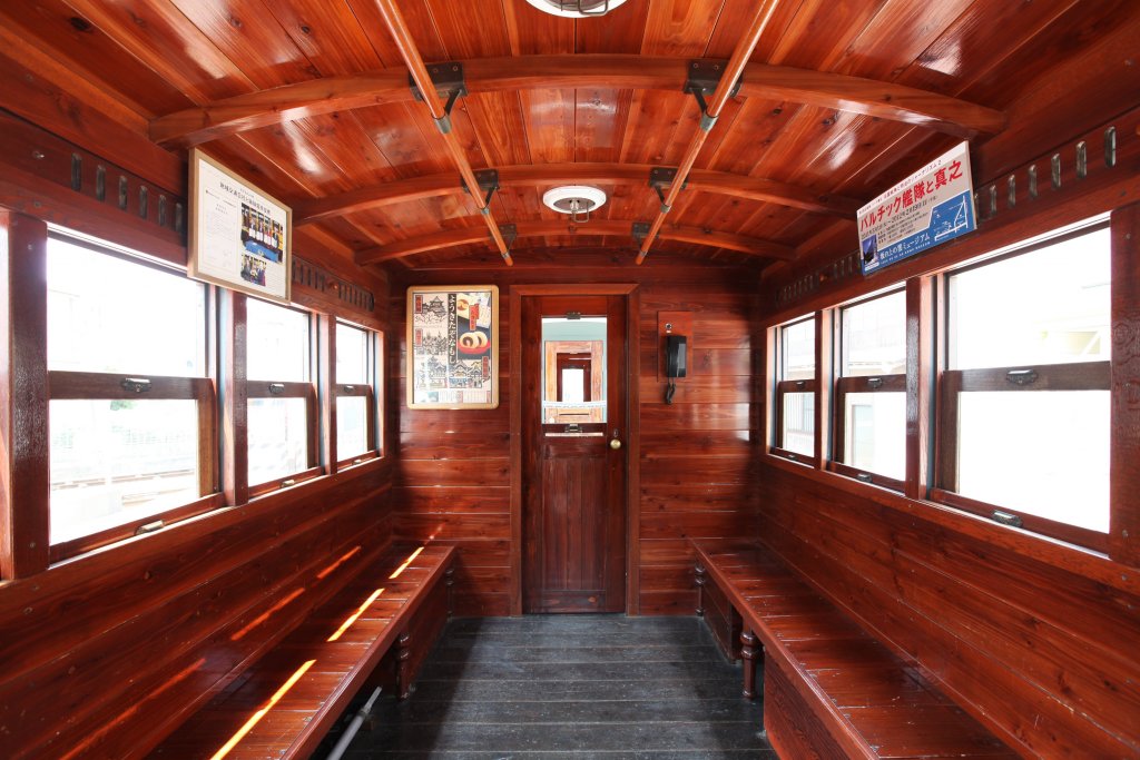 The interior of the modern coaches, decorated with wood, exudes an atmosphere of the Meiji Period. (Image credit: Visit Ehime)