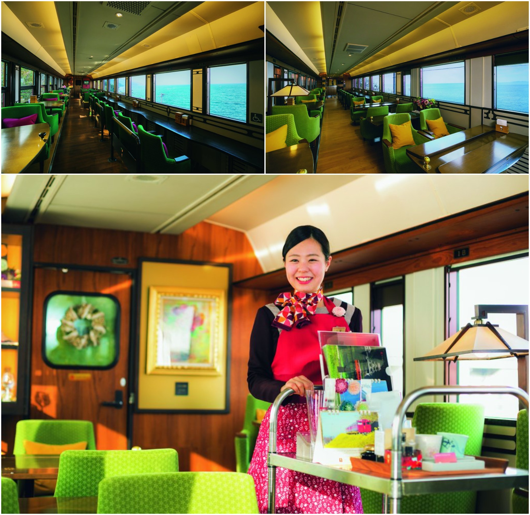 Sitting on roomy seats in the train with the retro-modern interior creating a tranquil atmosphere, passengers can enjoy attractive scenery from the train window during all four seasons, as well as meals rich with fresh local ingredients. The hospitality of exclusive attendants and the genuine welcome from people along the line warm the hearts of passengers.