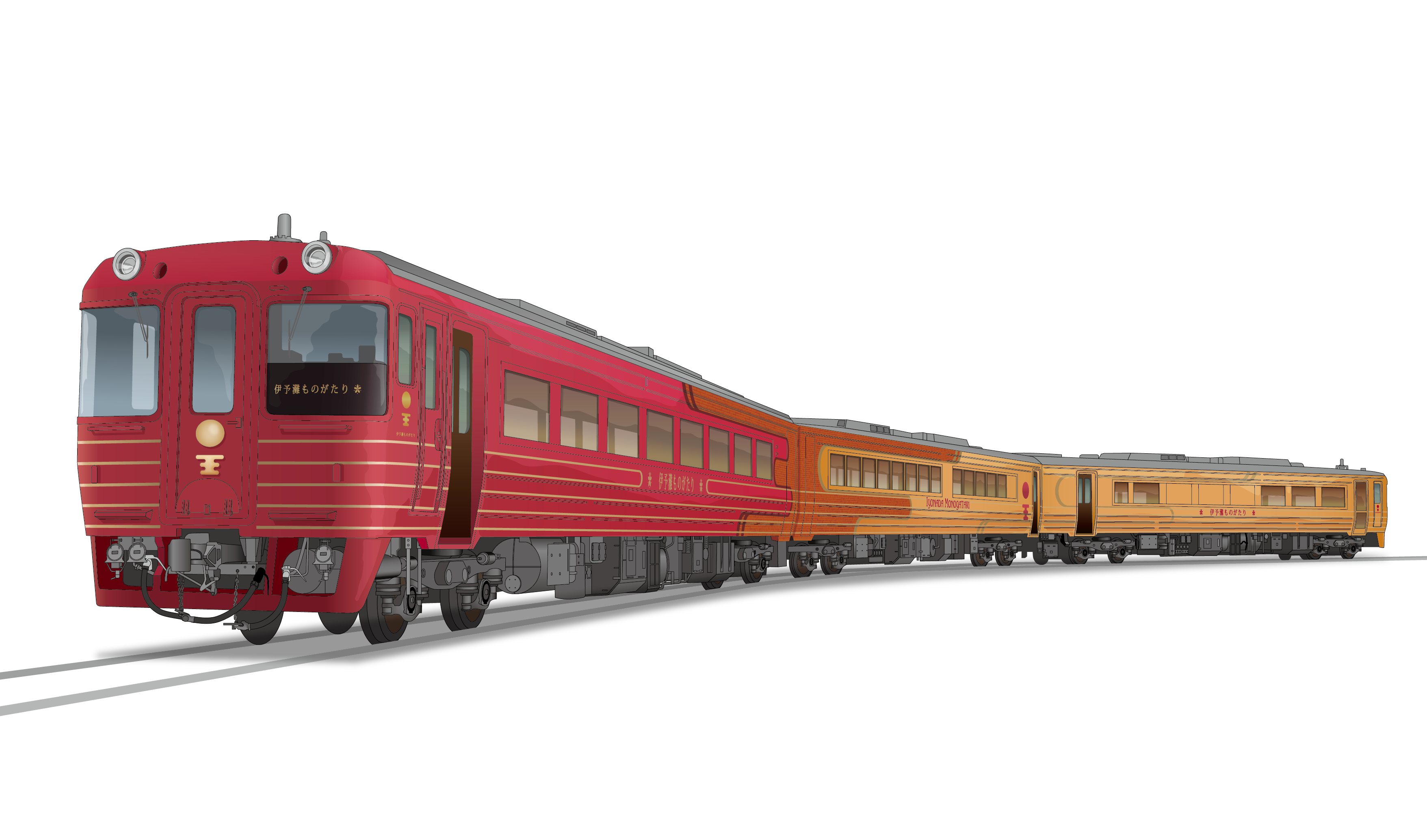 The Iyonada Monogatari (伊予灘ものがたり) is a two-car sightseeing train that runs on the railroad along the Iyonada Sea, affectionately known as the Iyonada Line with Love (愛ある伊予灘線 Ai Aru Iyonada-sen). It makes two round trips a day between Matsuyama and Iyo-Ozu Station (伊予大洲駅 Iyo-Ōzu-eki) / Yawatahama Station (八幡浜駅 Yawatahama-eki). During the ride, you can enjoy stunning views of the Iyonada Sea and the Hijikawa River (肱川).