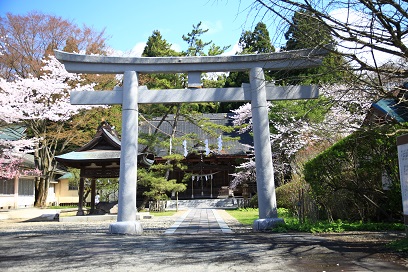 Iyataka Shrine’s stone torii in spring. (Image credit: 東北観光推進機構)
