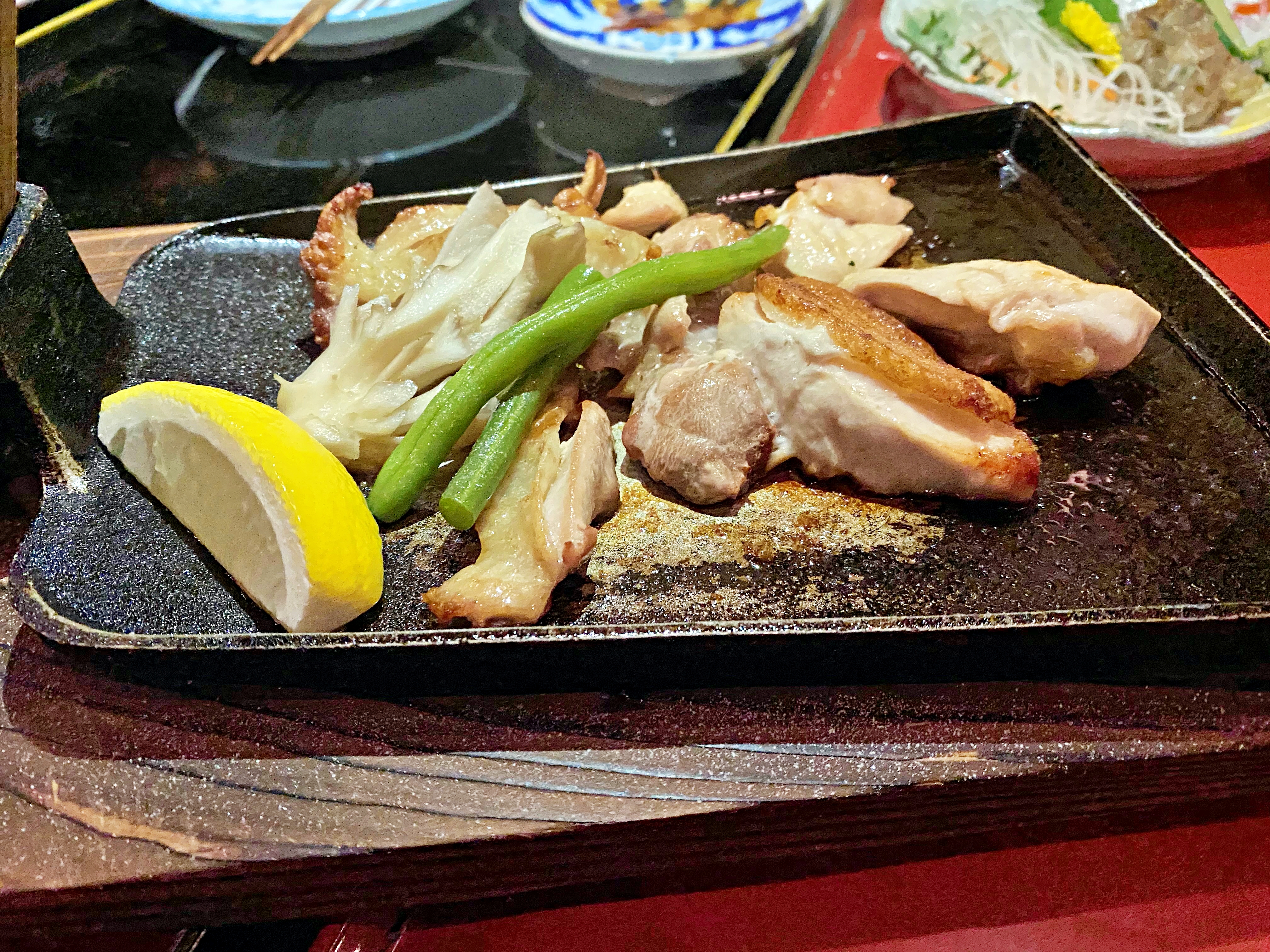 Next up, we had Hinaijidori no kuwayaki (比内地鶏のくわ焼き). This is Akita’s famous Hinaijidori breed of chicken, served with maitake mushrooms and vegetables, that is grilled on an iron plate that resembles the shape of a hoe (kuwa). The chicken skin was crispy, and the flesh was so tender and juicy…yum!