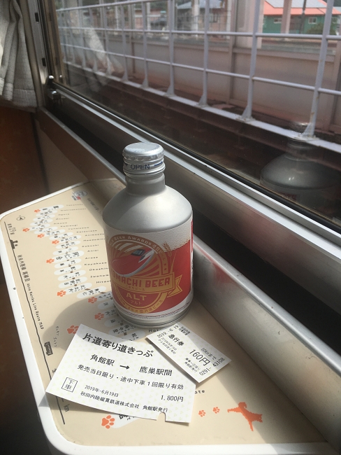 The start of a day-long adventure, with train tickets and beer. Note the little Akita-inu jumping its way through the stations on the Akita Nairiku Line. (Image credit: Kevin Koh)