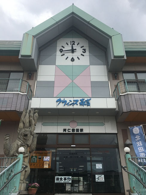 When I arrived at Takanosu Station, right before I was about to get off, the attendant, who probably figured I was a tourist from my bags, gave me a smile and wished me a pleasant and safe journey. That put a smile on my face as I exited the station and entered the JR station building. True to their name of “Smile Rail” and their motto of putting smiles on the faces of all who take their trains, the Akita Nairiku Line is indeed an enjoyable experience, with its rustic scenery and old-school charm.