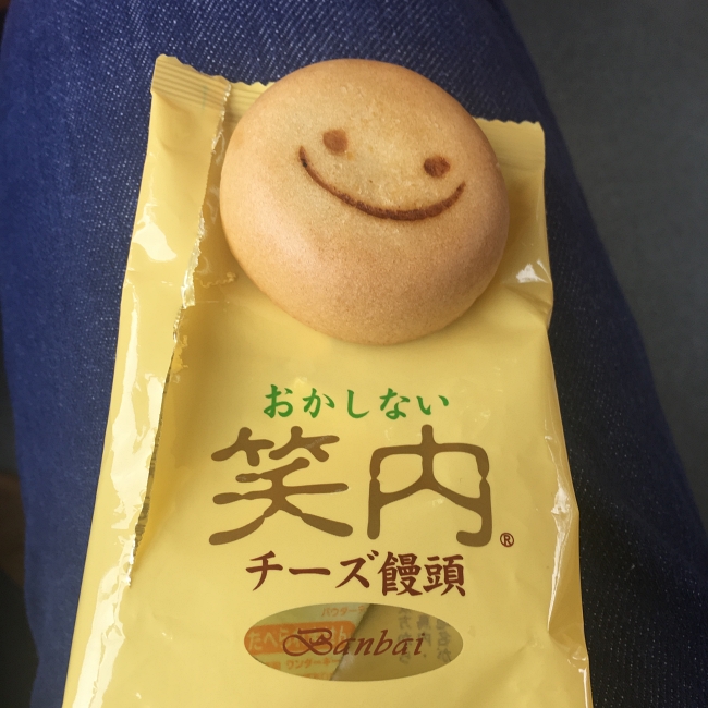 For those who want something sweet, how about a unique treat named after one of the stations on the Akita Nairiku Line? The train attendants, as mentioned earlier, sell local souvenirs and other trinkets in the train—what caught my eye amidst all the options was a little smiley face staring back at me, that of a manjū (饅頭), a little baked cake with bean paste filling.