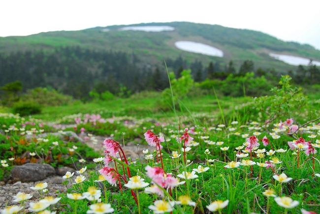 Spring is not the only season to view flowers in Japan, though—summer is just as equally beautiful, when alpine flowers burst into bloom. While there are famed spots like Rebun Island off Hokkaido and the Hakuba mountains in Nagano, the area along the Akita Nairiku Line also has its claim to fame for alpine flowers with Mount Moriyoshi (森吉山 Moriyoshi-zan), the fifth-tallest mountain in Akita and the tallest along the line. While it is more famed as a skiing spot, it has also been chosen as one of the Hundred Greatest Flower Mountains in Japan because of the variety of flowers that can be seen at various altitudes along its 1,454m height.