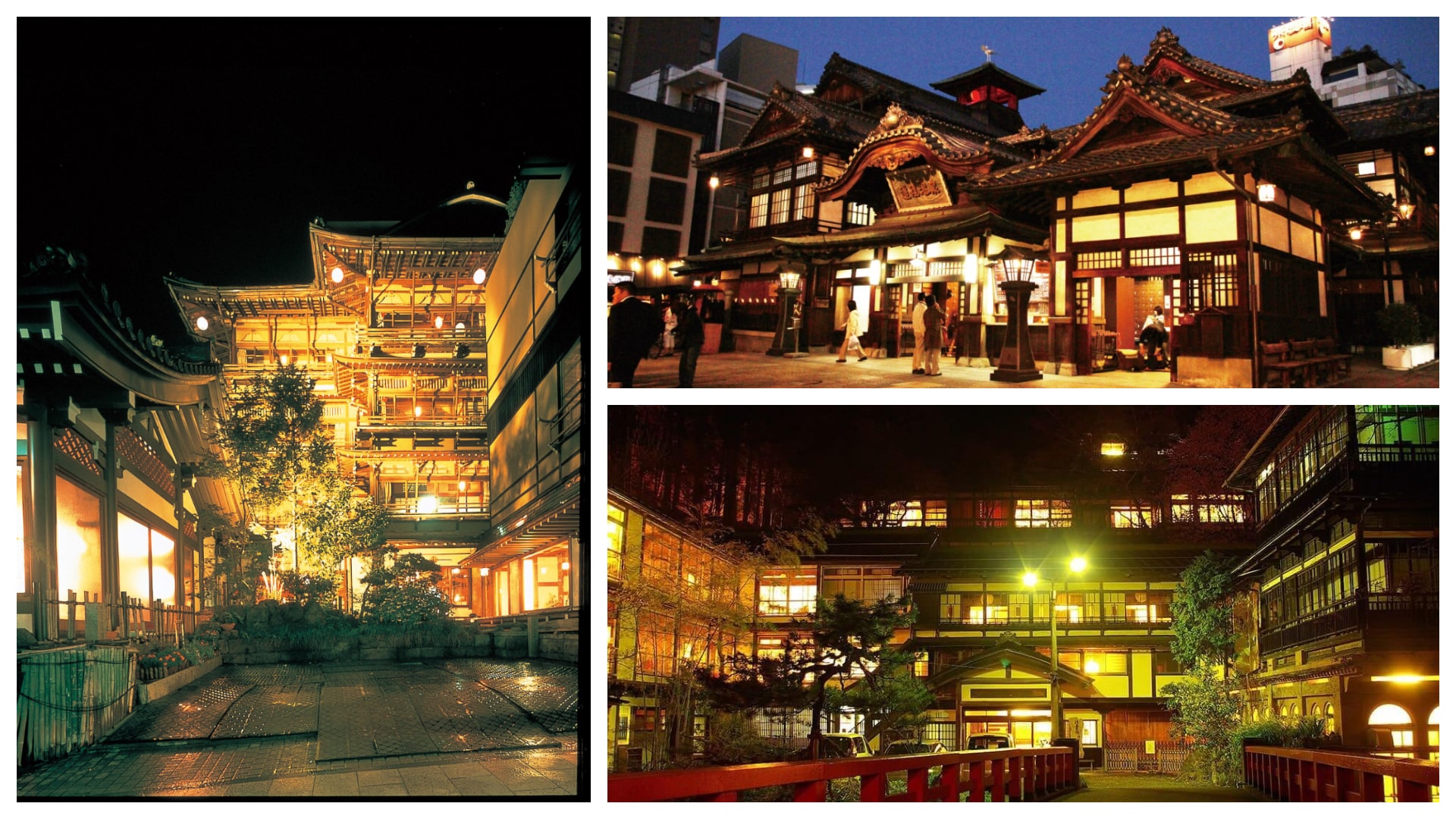 Kanaguya (left) in Nagano, Dōgo Onsen (top right) in Ehime, and Sekizenkan in Gunma. (Image credit: Kanaguya, Sekizenkan, JTA / JNTO)
