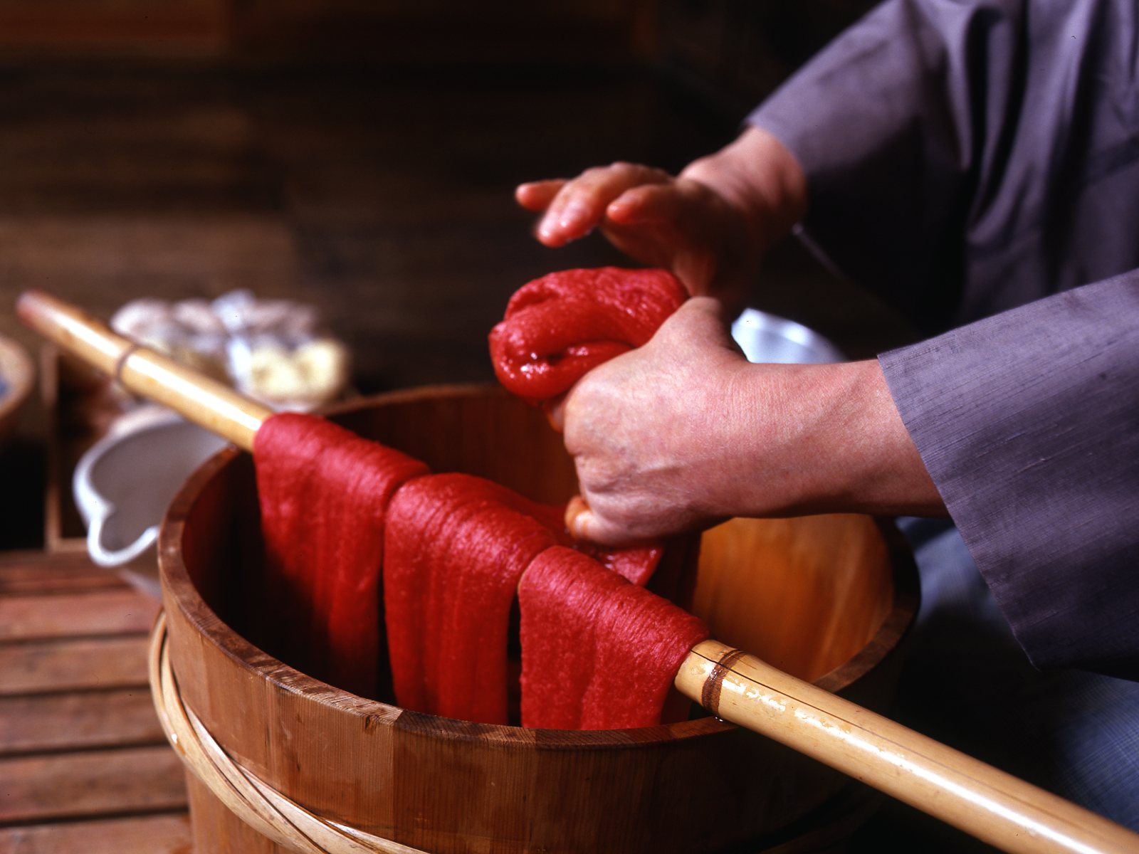 Dyeing using safflower. (Image credit: Yamagata Prefecture)