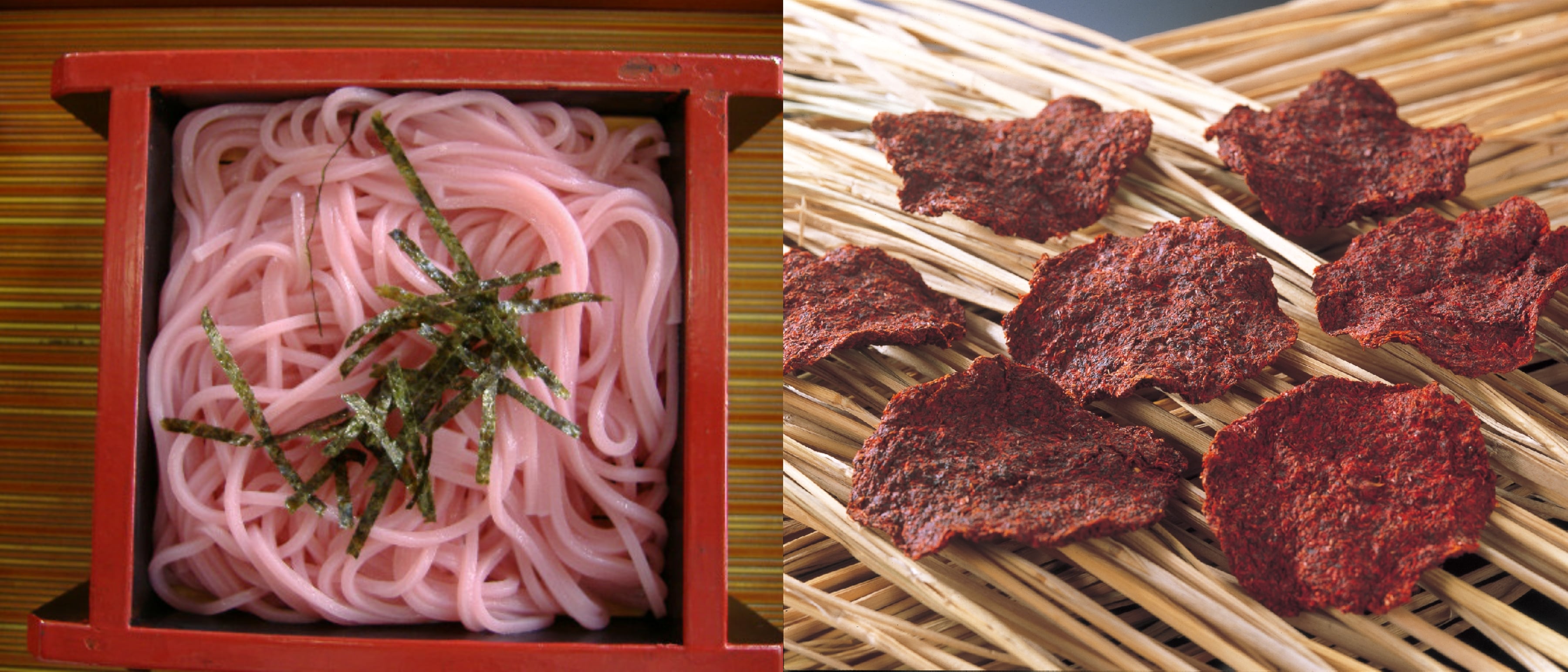 Safflower as flavouring for foods such as soba and sticky rice cakes. (Image credit: Yamagata Prefecture)