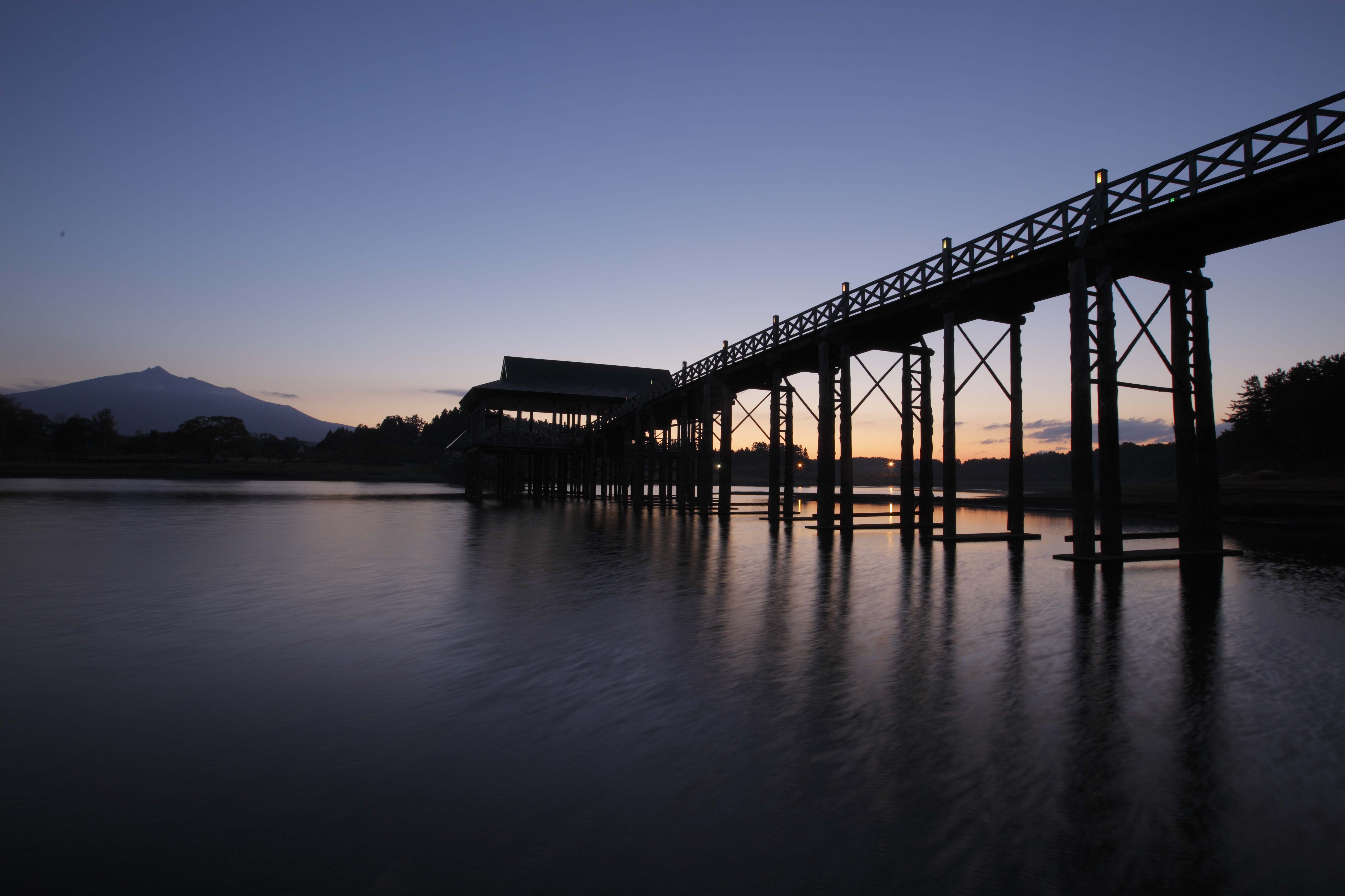 Tsuru-no-Mai Bridge after sunset. (Image credit: Aomori Prefecture)