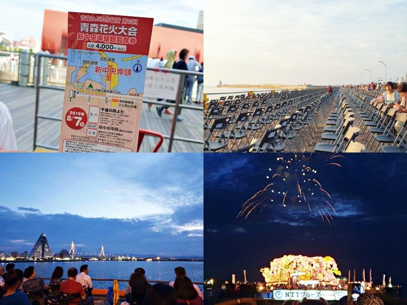 For the finale fireworks and boat parade, ticketed seats are available at the wharf. These seats directly face the bay, and provide an up-close, unobstructed view of the fireworks and the floats as they pass by. Thanks to my wonderful colleagues from Morioka, I snagged a seat for this area!