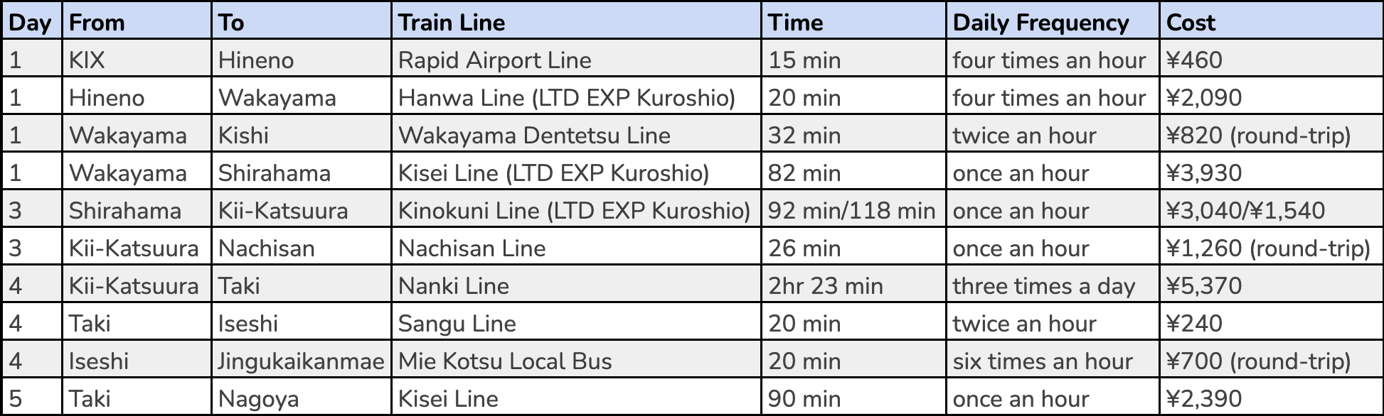 - Ise-Kumano-Wakayama Area Tourist Pass (5 Days) price: ¥11,210
