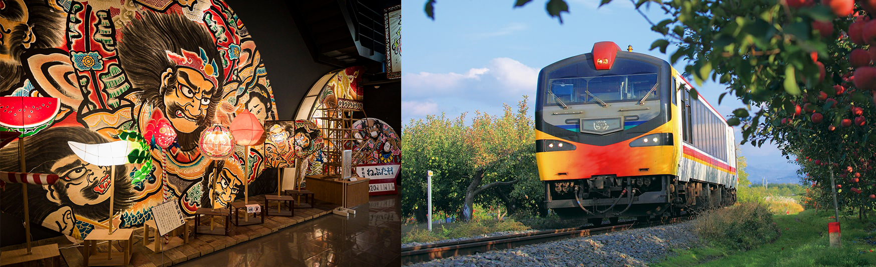Our next daytrip will be to Akita Prefecture (秋田県 Akita-ken), which is popular with people seeking unexplored hot springs, sake, and Akita culture. The Hachimantai (八幡平) area offers a range of outdoor activities, while the fascinating and well-preserved samurai district in the town of Kakunodate (角館) offers a glimpse into Japan's feudal past. Akita is also home to the southern side of the Shirakami Sanchi (白神山地), a world heritage site popular with nature lovers and hiking enthusiasts. The majesty of these mountain ranges can be enjoyed from a train seat in the Resort Shirakami Joyful Train, which could also be used to head straight to our next destination of Aomori, if you’d prefer to split your stay there for your trip.
