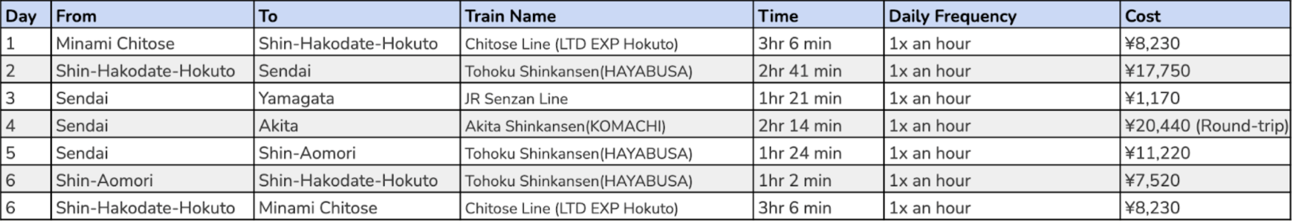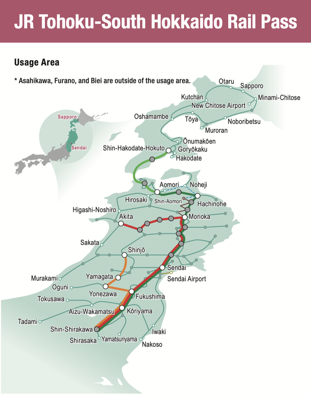 - JR Tohoku-South Hokkaido Rail Pass price: ¥24,000