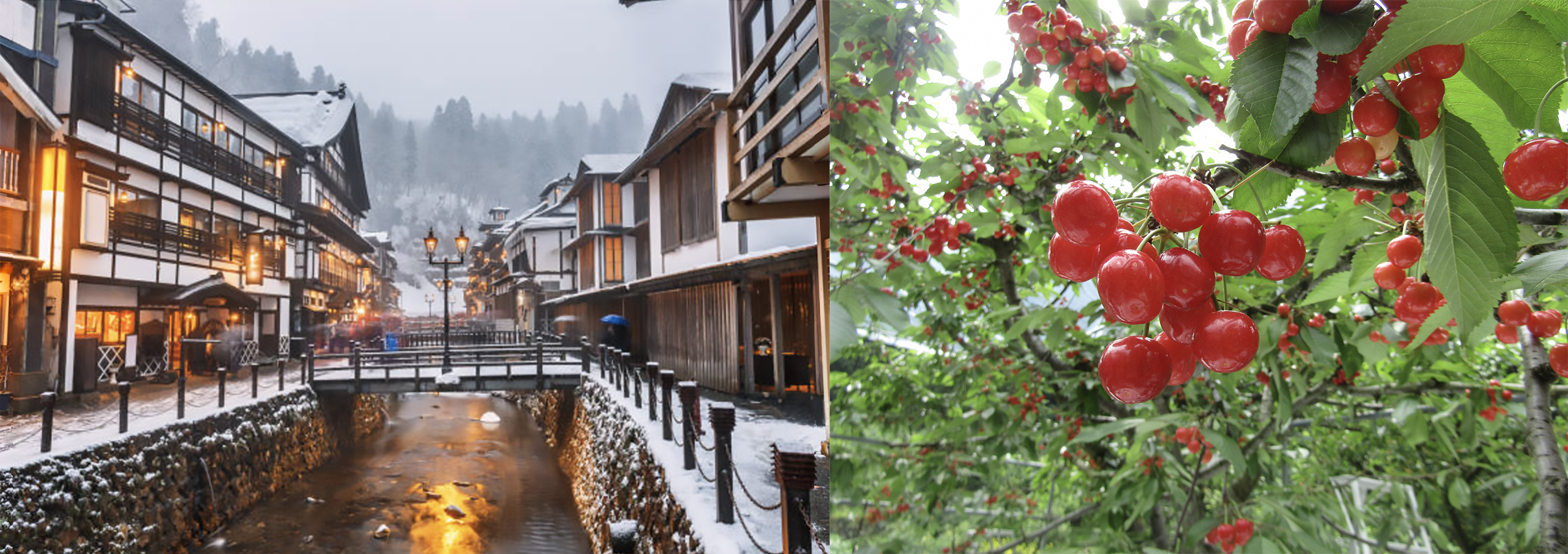 Yamagata Prefecture (山形県 Yamagata-ken) is rich in mountain ranges and beautiful nature, and is famous for agricultural products such as rice and cherries (さくらんぼ sakuranbo). Hot springs are distributed far and wide in this prefecture, with virtually every town or village hosting its own hot springs. Amongst these, one of the most famous is Ginzan Onsen (銀山温泉), where you can enjoy the atmosphere of a retro hot spring town plucked straight out of the Taisho Era.