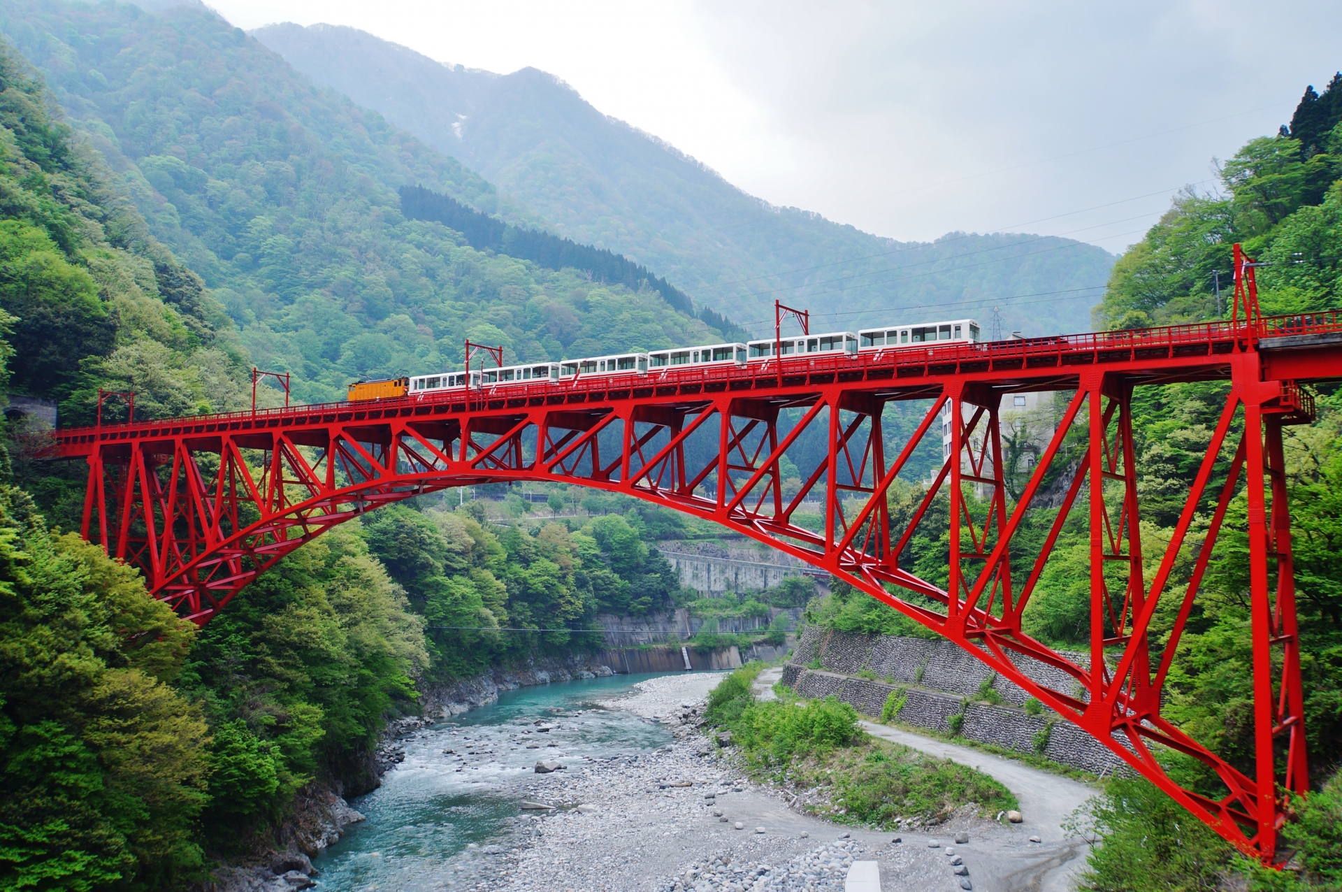 The Kurobe Gorge Railway (黒部峡谷鉄道 Kurobe Kyōkoku Tetsudō) is an exciting and scenic 80-minute train ride through the valleys of Toyama. The journey is dotted with several picturesque bridges, hot springs, and various sights such as a power plant built like a European castle. The railway is open from 20th April–30th November annually and is an especially excellent way of viewing the autumn colours of Japan in the later months. The round trip costs ¥3,960 and is not covered by the Kansai-Hokuriku Area Pass.