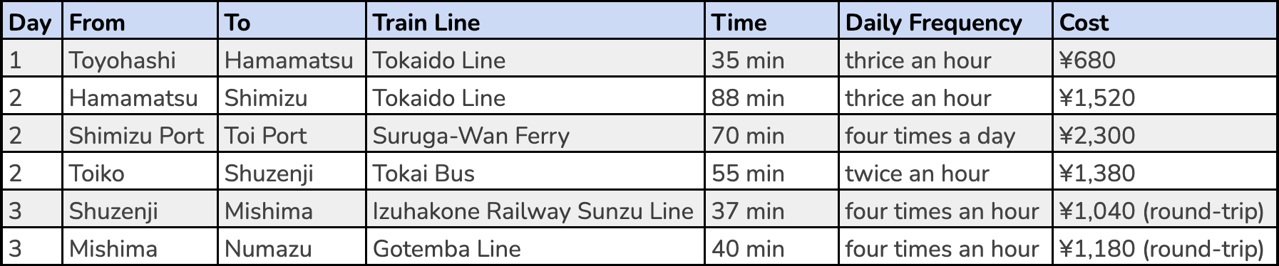 The Mt. Fuji-Shizuoka Area Tourist Pass Mini (referred to henceforth as the Mt. Fuji-Shizuoka Tourist Pass for this article) is a special travel pass released by JR Central in 2016 to further promote travel around the region with a focus on Mount Fuji. This pass is very unique when compared to the other regional rail passes usually available, as it requires very particular conditions to use. It is only valid for three consecutive days and can be used for most local trains, private railways, buses, and ferries in the area, but NOT on the Shinkansen. Its area of use also does not include nearby major transportation hubs such as Tokyo or Nagoya (名古屋市 Nagoya-shi), so you will have to arrange a separate mode of transportation to enter the region before you can use it. That being said, it is a very cheap pass which has the potential to give you a great amount of savings in travel costs, so without further ado, here is my personal recommended itinerary to help you explore Shizuoka Prefecture!