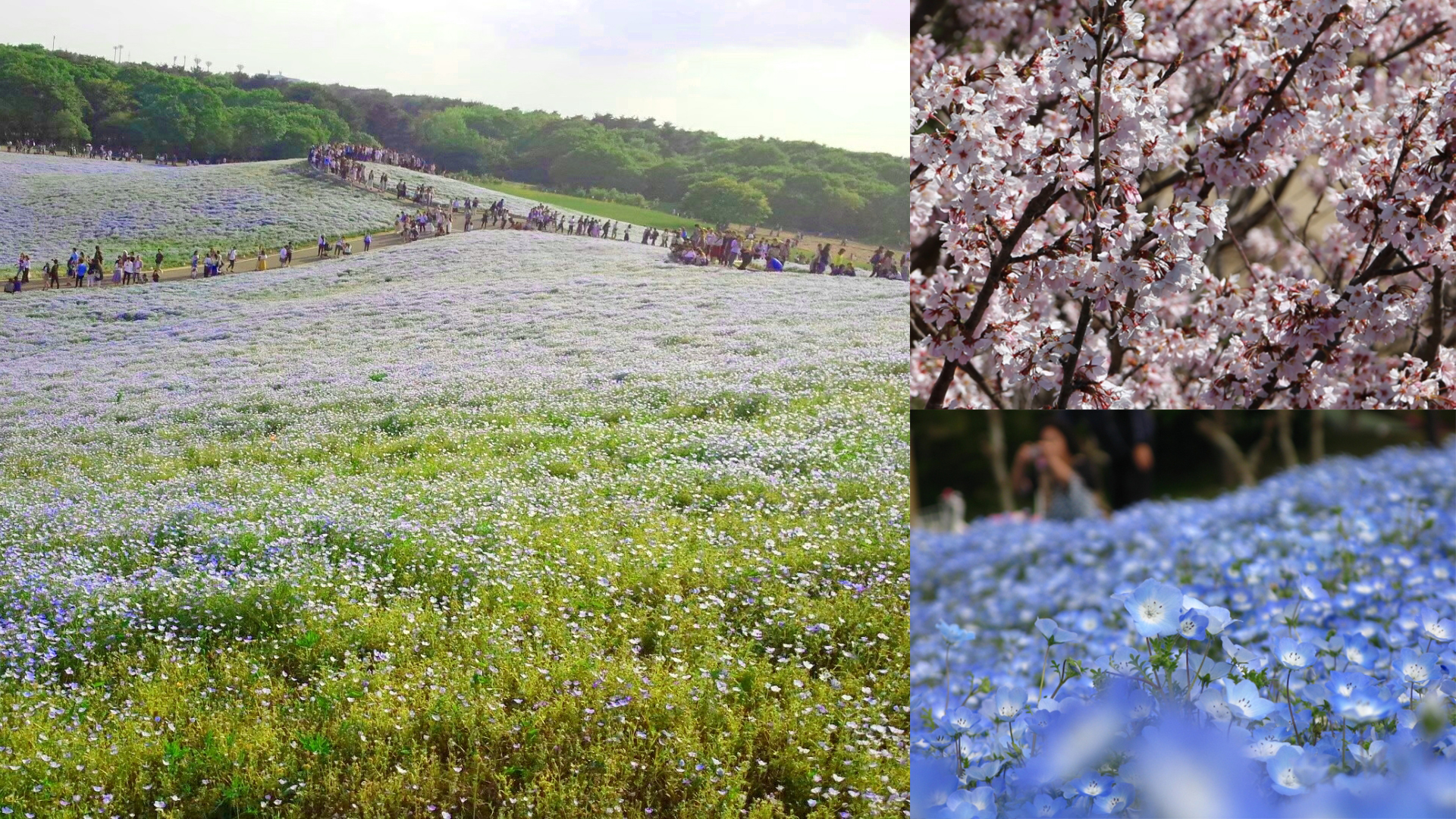 Different flowers bloom in Hamamatsu Flower Park year-round, such as these hills of nemophilia. (Image credit: photoAC)
