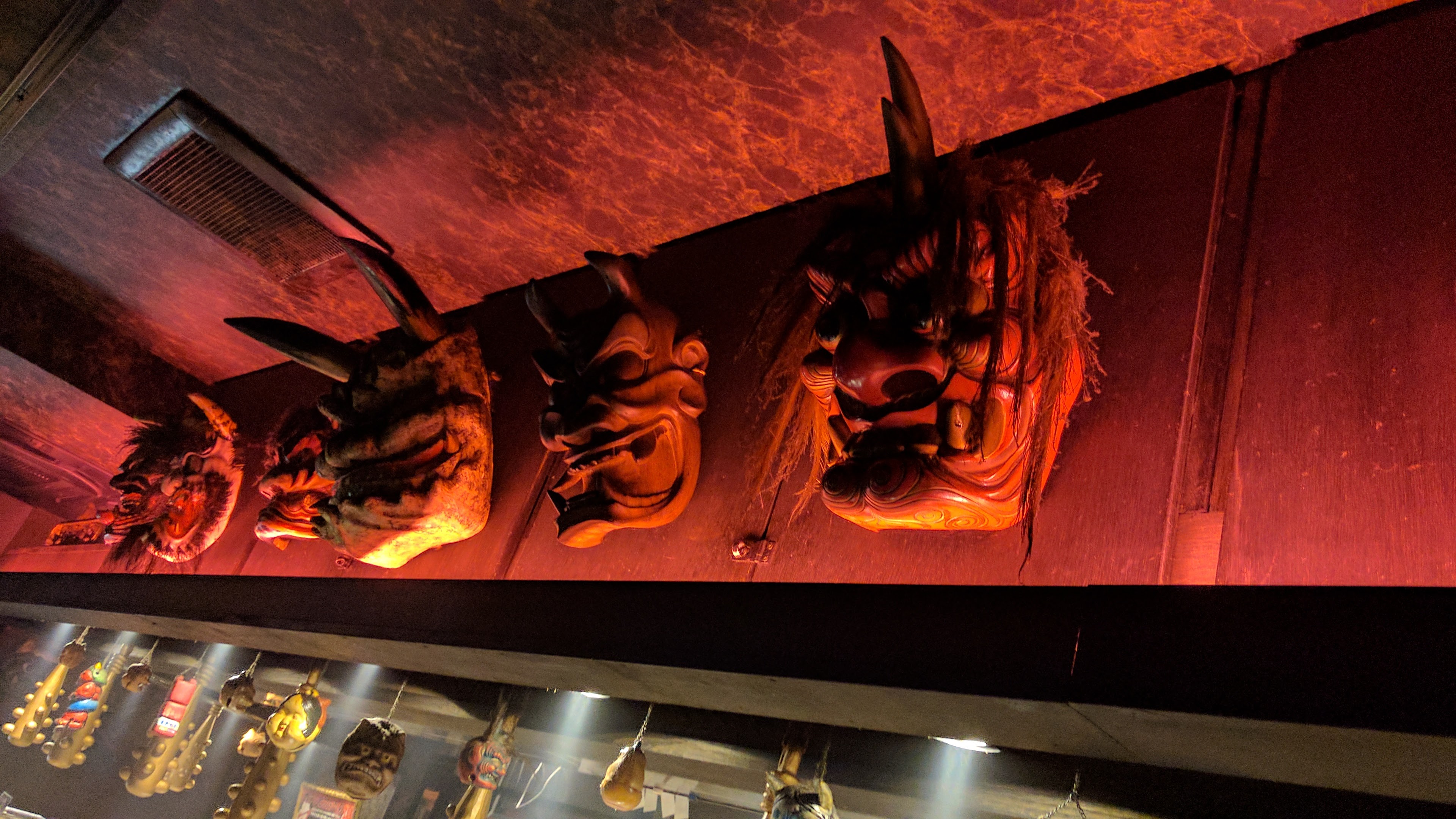 This ramen is not for the faint-hearted. First-time visitors may be turned off by the eatery’s intimidating exteriors that graphically depict drawings of demons (鬼 oni), and demon masks that line above the countertop tables inside. It is meant to be intimidating, as eating something as spicy as this is meant to be a rite of passage for anyone courageous enough to step inside and confront the ‘demon in the bowl’!