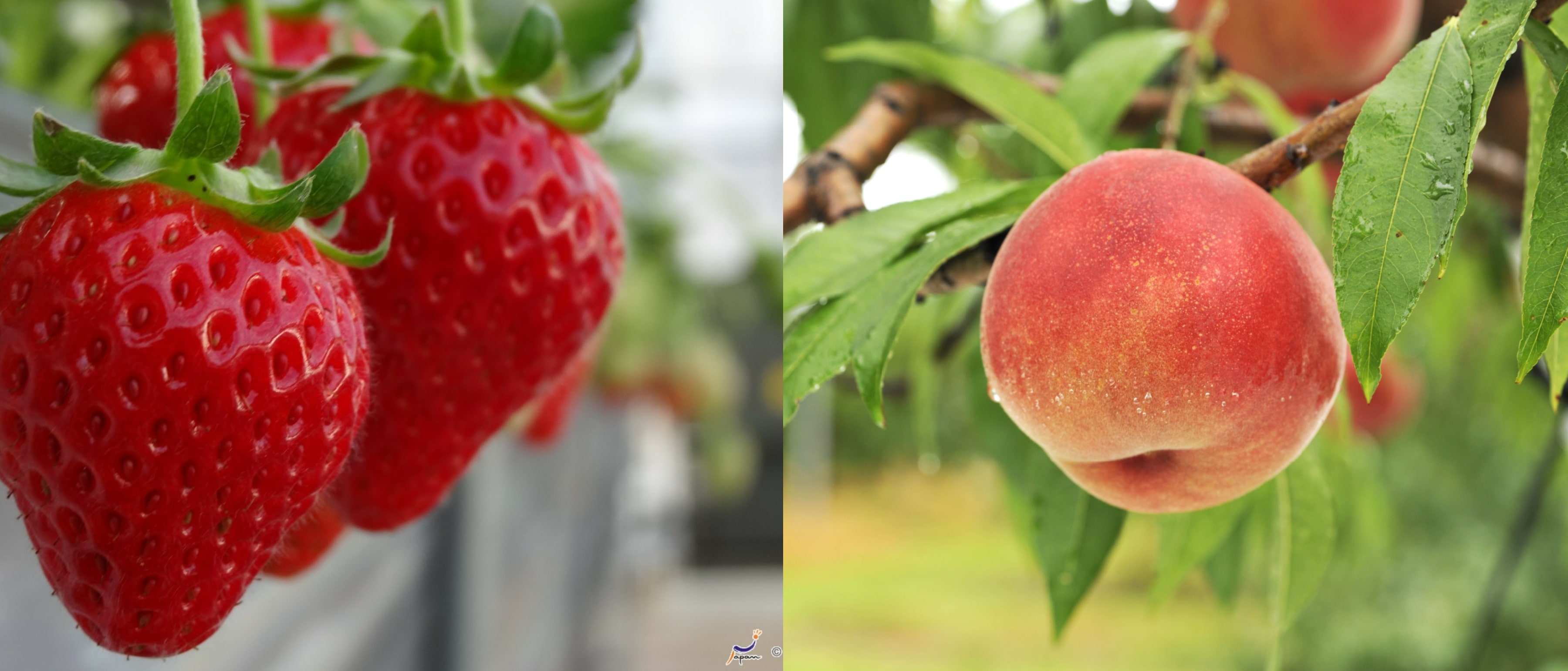 Strawberries are best enjoyed during cooler months, whereas peaches are best during summer. (Image credit: Daisuke Yatsui / JNTO (left), Nagano Prefecture (right))