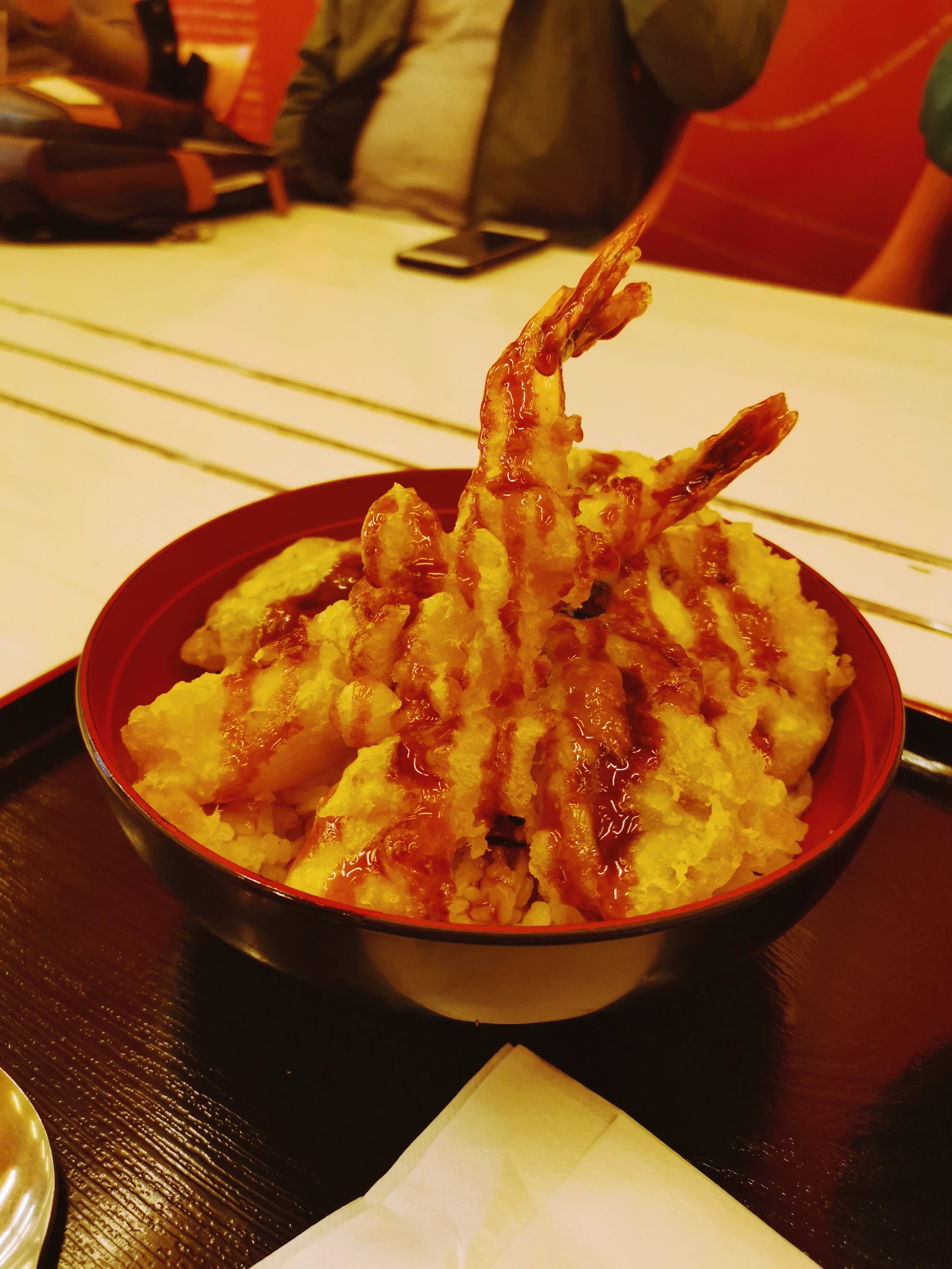 Seafood tempura rice bowl (天丼 tendon) at PALPAL. (Image credit: JR East / Nazrul Buang)