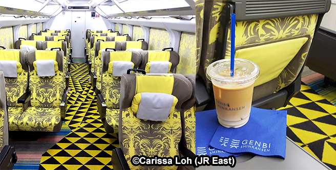 Colourful yellow seats of Car 11. (Image credit: JR East / Carissa Loh)