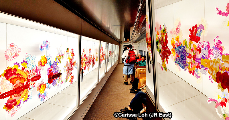 Haruka Koujin’s colourful artwork in Car 15. (Image credit: JR East / Carissa Loh)