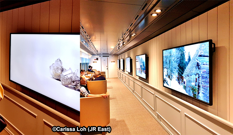 Video installations in Car 16. (Image credit: JR East / Carissa Loh)