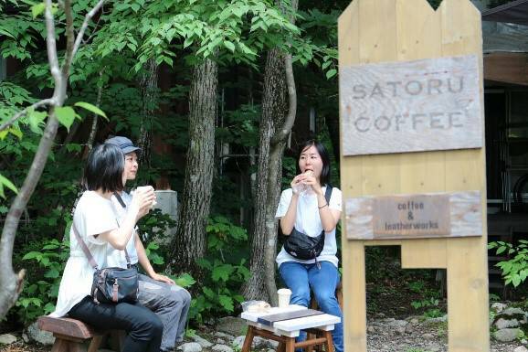 After buying our bread, we cycled to a nearby coffee shop, Satoru Coffee. It was a small shop like a secret base surrounded by trees, and gave off an aroma of coffee beans. The cup of gently hand-dripped coffee was delicious, and it was interesting to watch how the coffee dripped. We had the bread and a cup of coffee at the table outside, and it was simply the best breakfast.