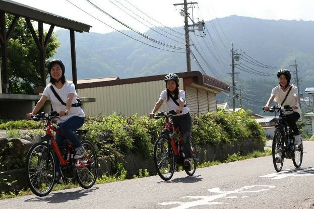 Cycling around the village of Hakuba. (Image Credit: JR East / Yuya Kumazaki)