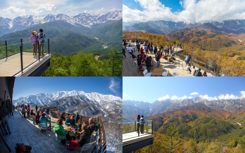 Newly built in October 2018, the terrace lets you get an unparalleled view of the surrounding mountains, from snow-capped peaks in spring, to lush greens in summer, to fiery warm colours in autumn, and snowy white in winter.