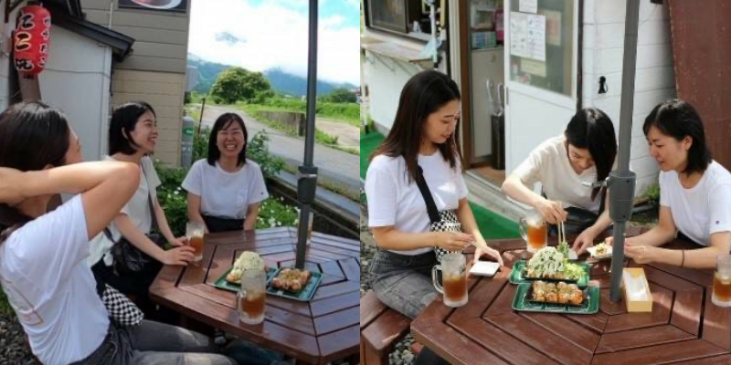 Enjoying takoyaki. (Image credit: JR East / Daisuke Shiba (left) and Yuya Kumazaki (right))