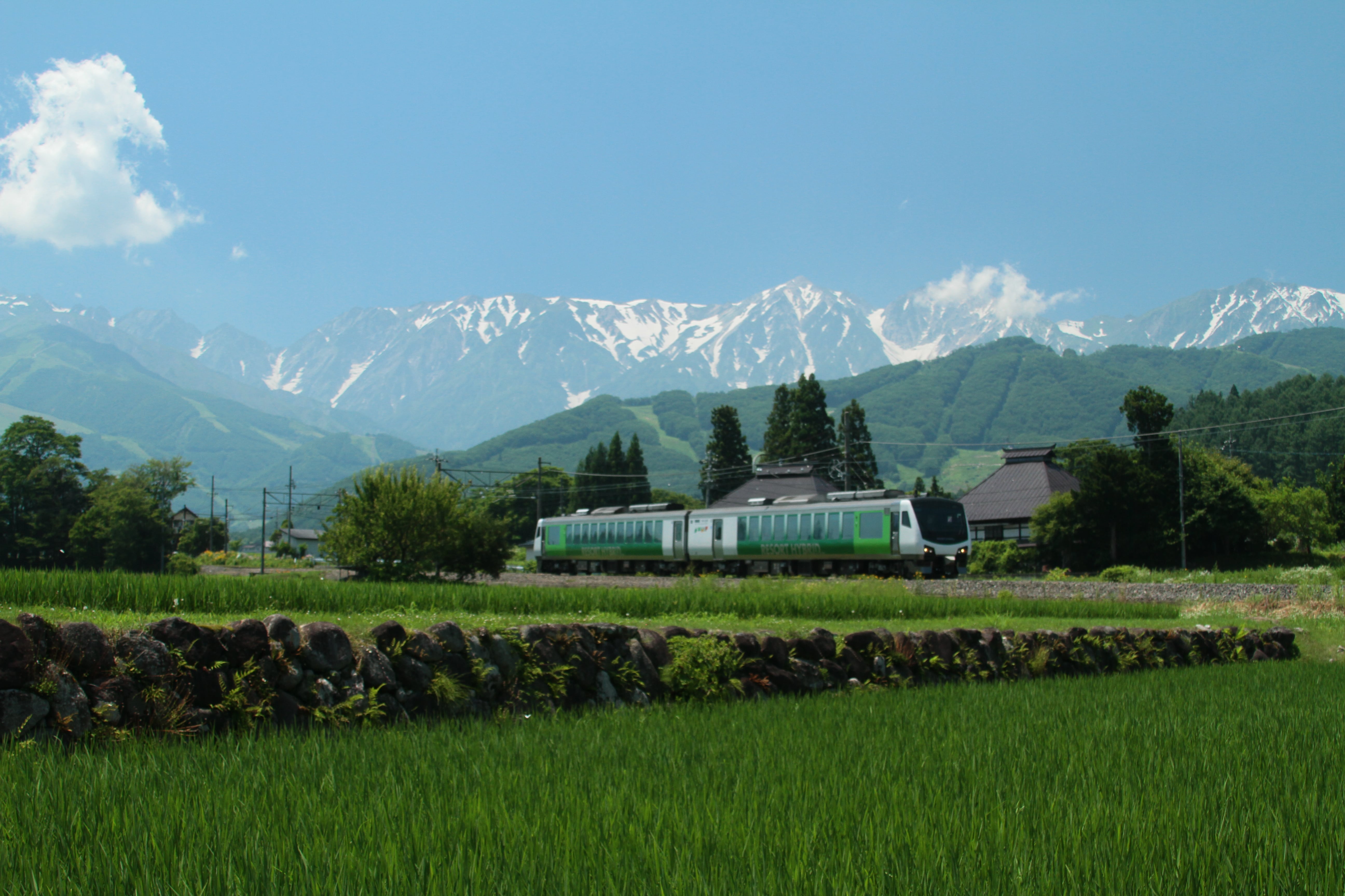 The Resort View Furusato against a backdrop of the Northern Alps. (Image credit: JR East)
