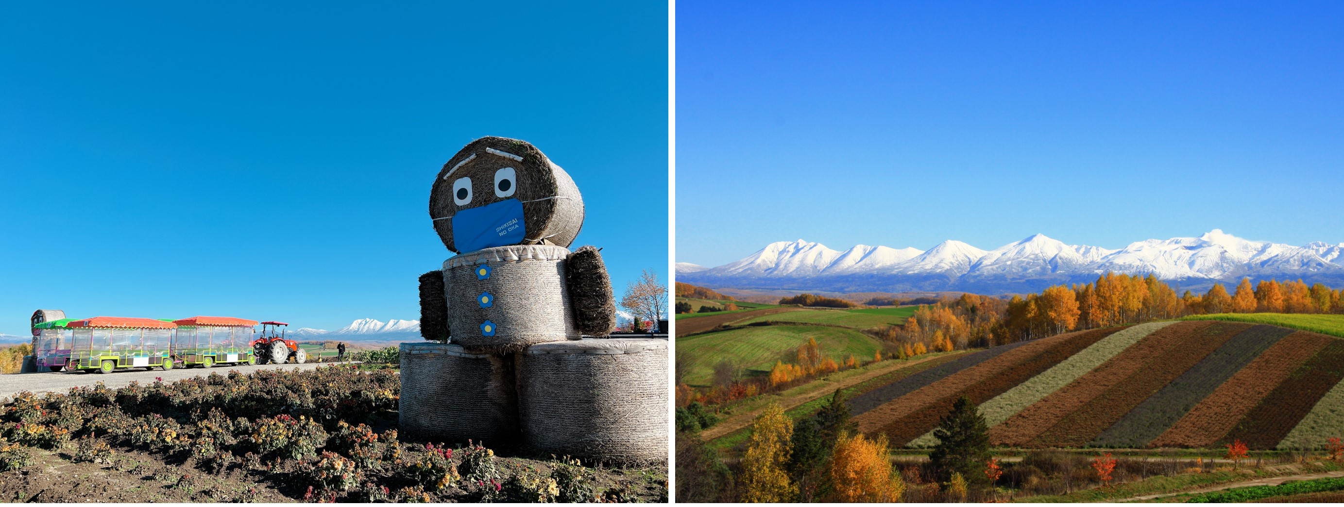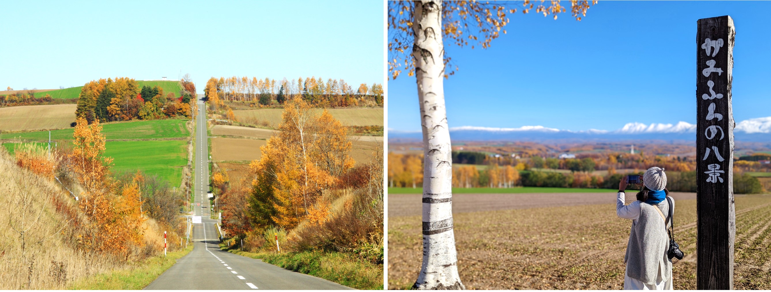Rollercoaster Road (left) and Kamifurano Hakkei (right). (Image credit: Hokkaido Railway Company)