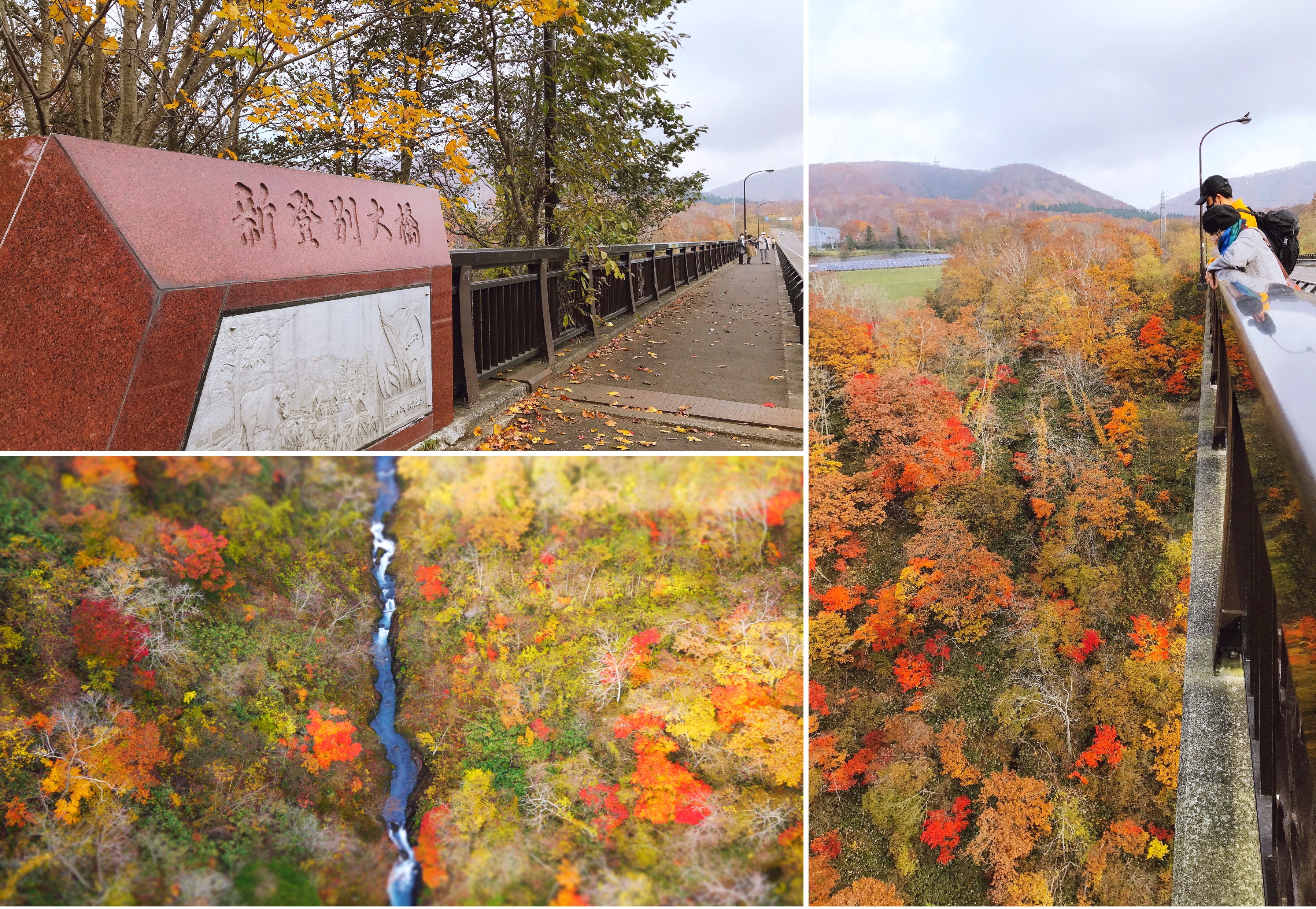 You can also see vibrant autumn foliage from Shinnoboribetsu Ohashi Bridge (新登別大橋 Shinnoboribetsu-ōhashi). The bridge stretches over a deep 120m valley that is filled with autumn leaves of trees such as maple (カエデ kaede), lacquer trees (ウルシ urushi), and azaleas (ツツジ tsutsuji).