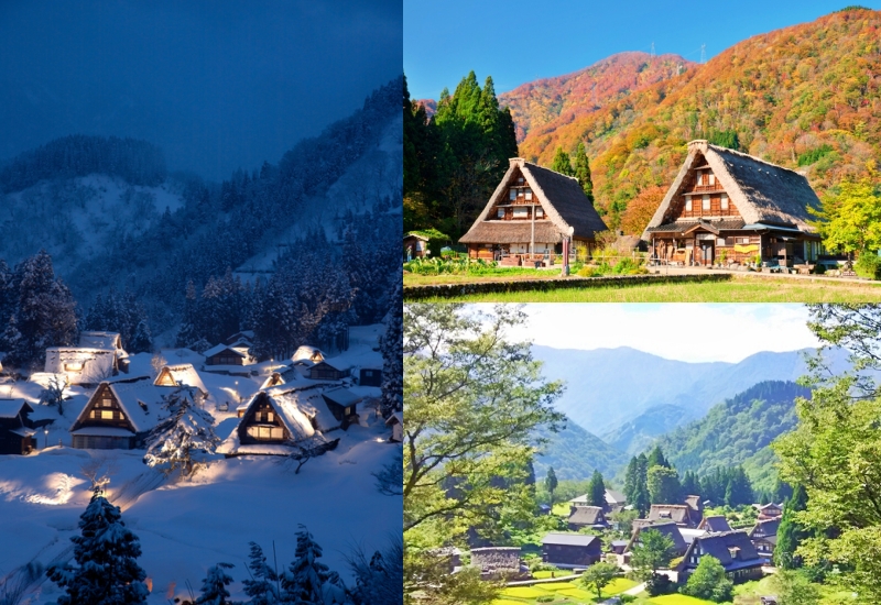 Gokayama’s gassho-zukuri houses in different seasons. (Image credit: とやま観光推進機構)