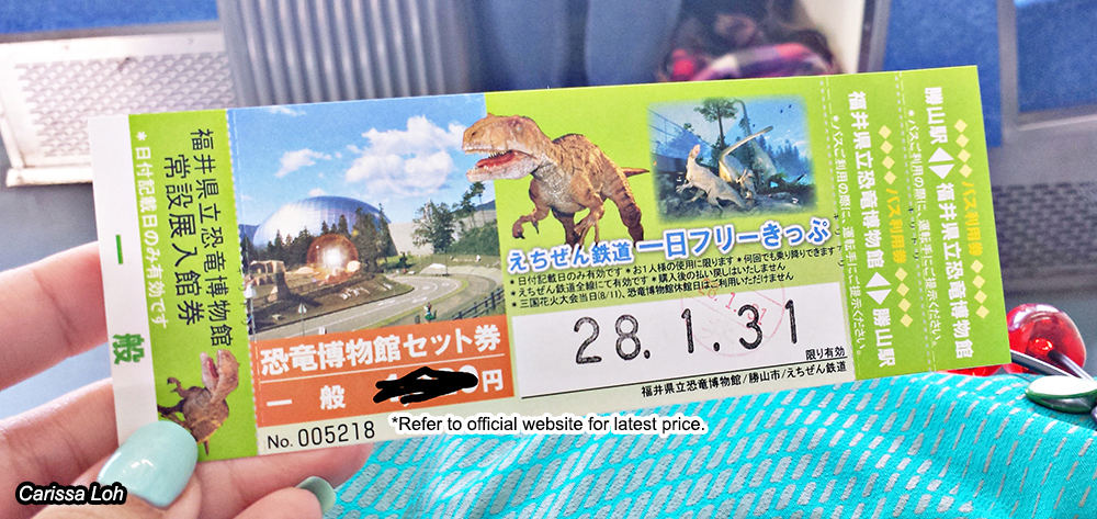Echizen Railway has a special ticket for a trip to the Dinosaur Museum. The ticket costs ¥2,130, and includes: