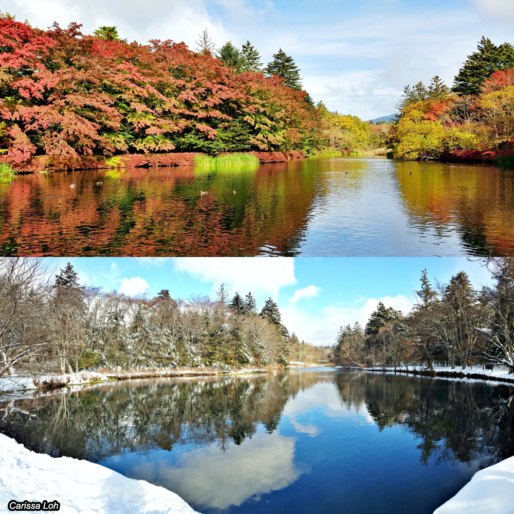 Kumobaike Pond (雲場池 Kumoba-ike), also known as Swan Lake even though there are no swans, is about a 30-minute walk or 10-minute bike ride from JR Karuizawa Station, and offers beautiful reflections of the sky and trees.