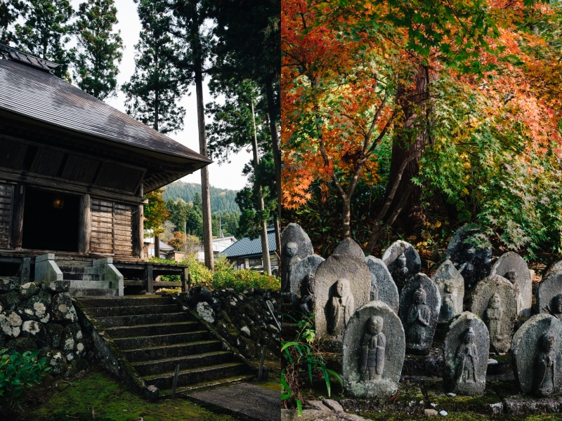 The next morning, feeling refreshed from a good night’s sleep, I decided to explore the area northwest of Iiyama Station before catching the train home in the early afternoon. Called “The Little Kyoto of the Shinshu District”, the foothills in western Iiyama City contain over 20 temples, which in the autumn are reminiscent of the temples in the Kyoto foothills, full of Japanese maples turning hues of red and orange. While my visit was a few weeks shy of peak season, the beauty of the coming fall was on display in several temples.