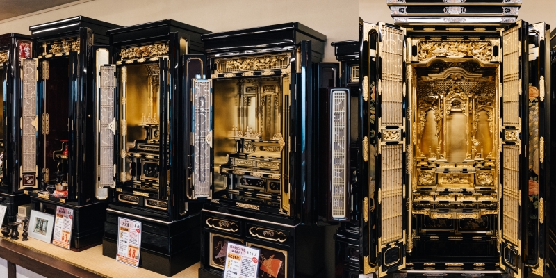 I dropped into one of the shops, which the young owner said had been in his family for 200 years, to ogle the Buddhist altars, assembled with care using some of the finest woods available in the area. The obvious question to me was how do so many shops selling Buddhist altars manage to stay in business in a relatively small city like Iiyama? The first part of the answer was that houses in Iiyama were on the whole much larger than those in big cities like Tokyo and had space for sizable altars, though modern houses were getting smaller in this respect. Nearly every household would have an altar, not to mention the large number of temples existing in the area that I had just been walking in. The second part, less obvious, was that Buddhist altar shops did not just sell new altars, they maintained existing ones. The maintenance requirements for all of the altars around the area ensured there would be plenty of business for everyone.