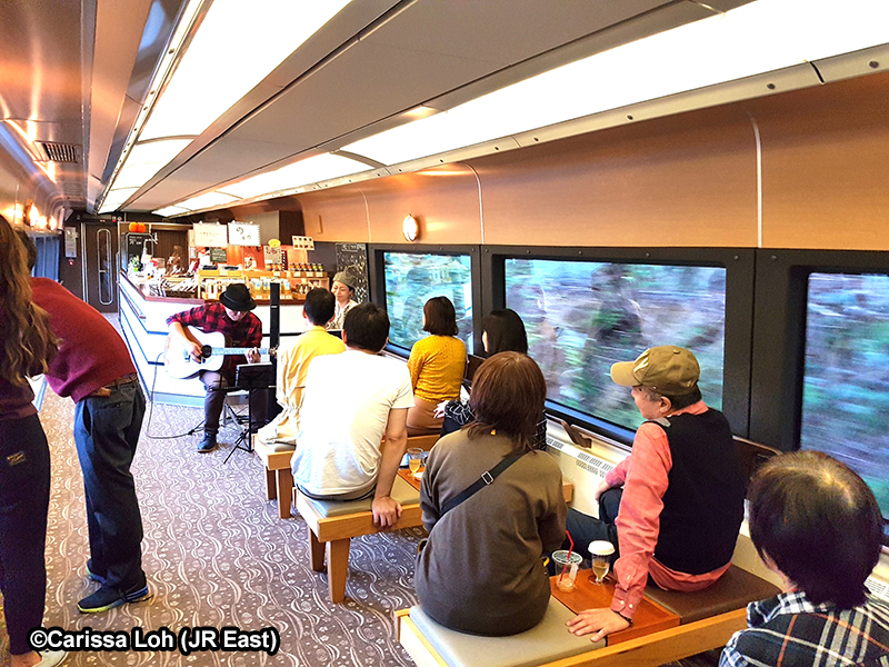 A live jazz performance in Car 2. (Image credit: JR East / Carissa Loh)