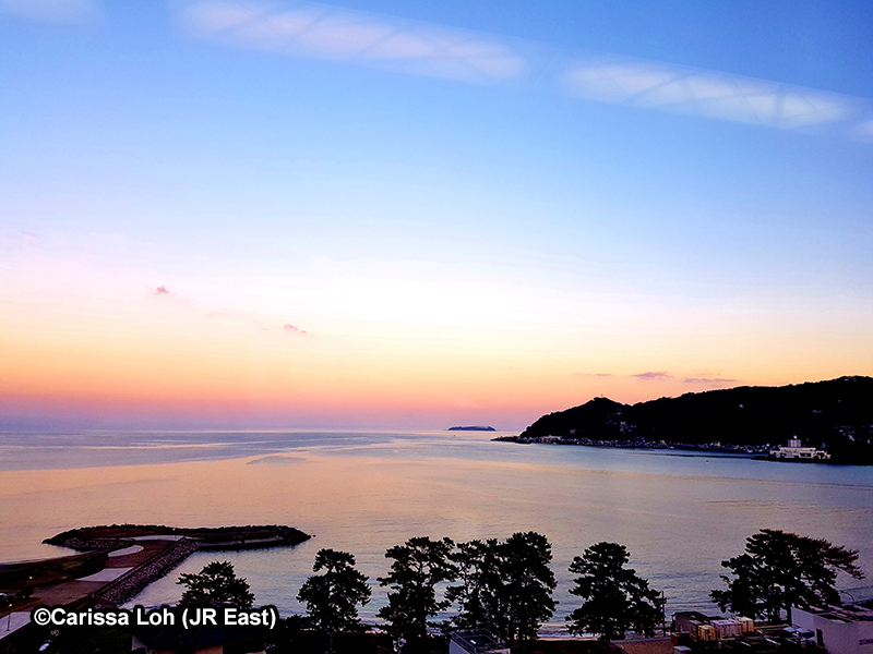 This was the view from my window-facing seat! I took the inbound Izukyu-Shimoda → Odawara train, which was operating near sunset, and this was the stunning multi-coloured pastel sunset view that I was treated to.