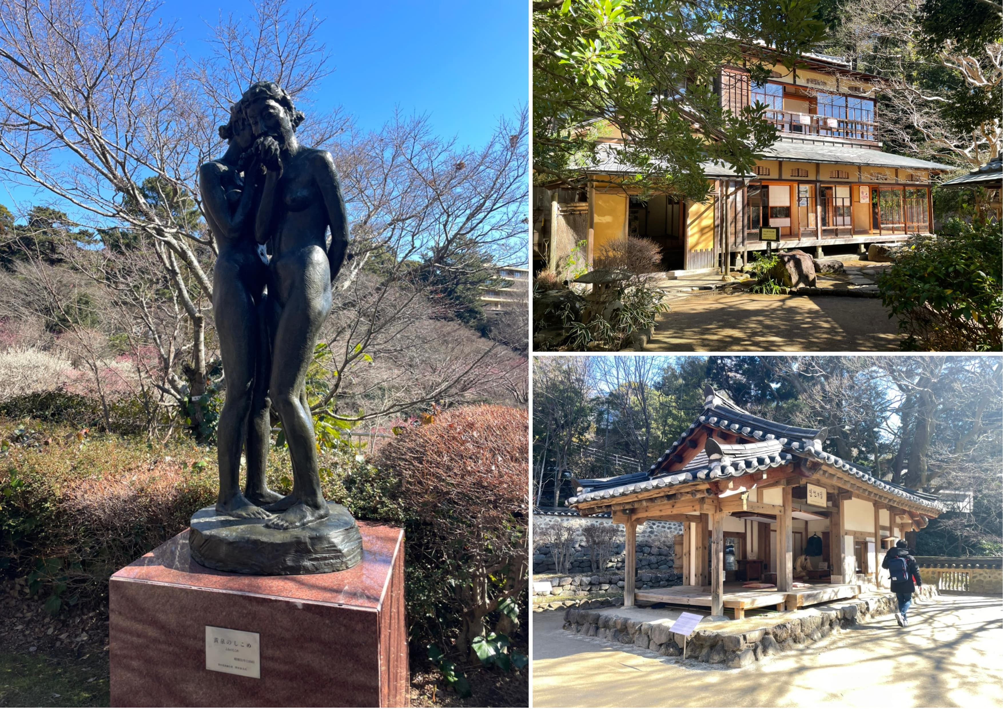 Apart from the plum blossoms, there were also interesting monuments and attractions that Jak and Emmie found in the garden. They included the Nakamura Shinpei Museum (中山晋平記念館 Nakamura Shinpei Kinenkan), which was built to commemorate the famous music composer who lived in Atami until his death in 1952, and the Korean Garden (韓国庭園 Kankoku Teien). They thought that visitors should check them out the next time they pay a visit here.