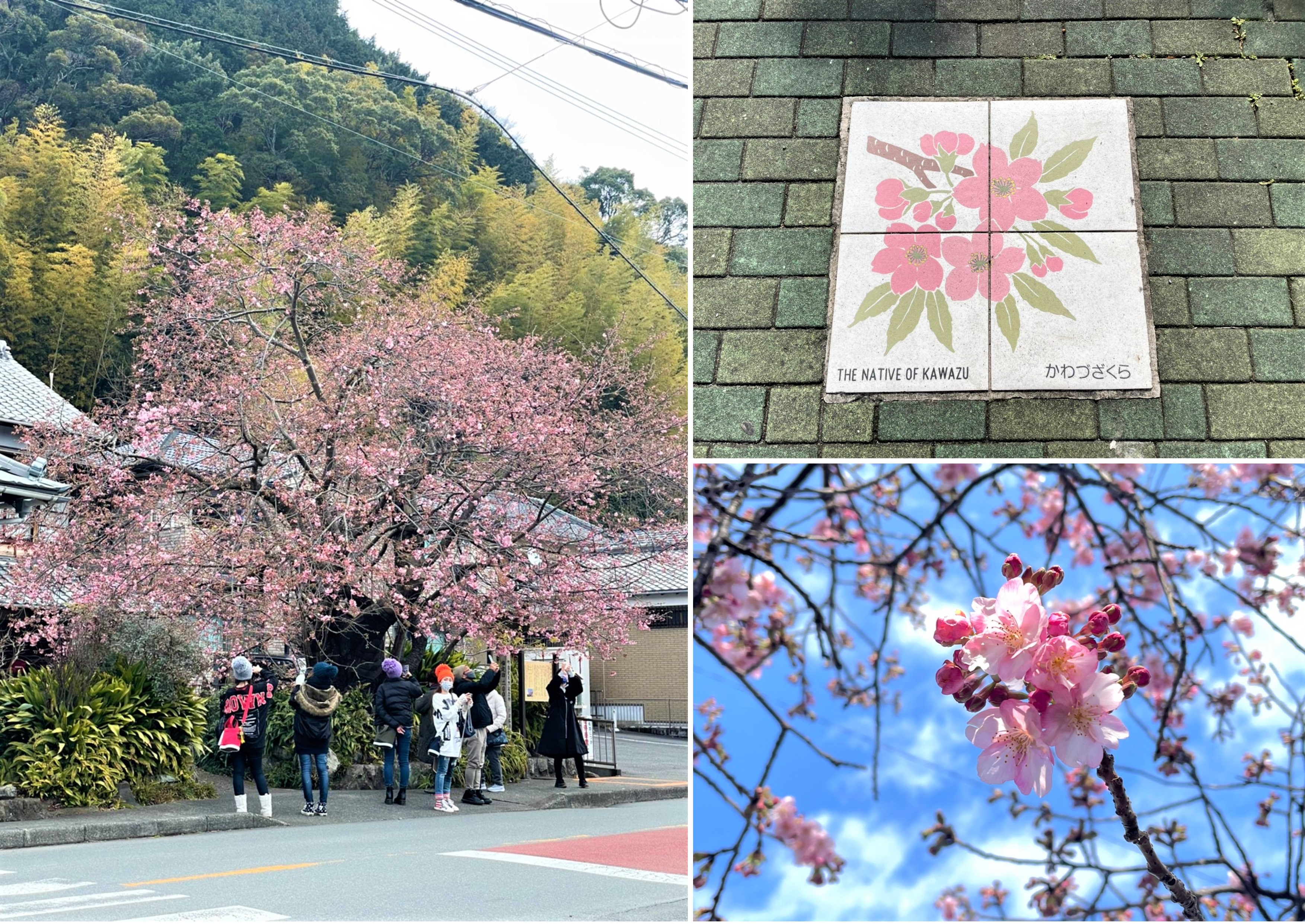 Kawazu is the host town for the Kawazu Cherry Blossom Festival (河津桜まつり Kawazu Sakura matsuri), and is popular for Kawazuzakura (カワヅザクラ), a type of cherry blossom that is unique to this town. Unlike its more common counterparts that usually bloom between March and April, Kawazuzakura blooms much earlier in February. Moreover, while most other types of cherry blossoms bloom for only 7–10 days, this one can bloom for up to 1 month!