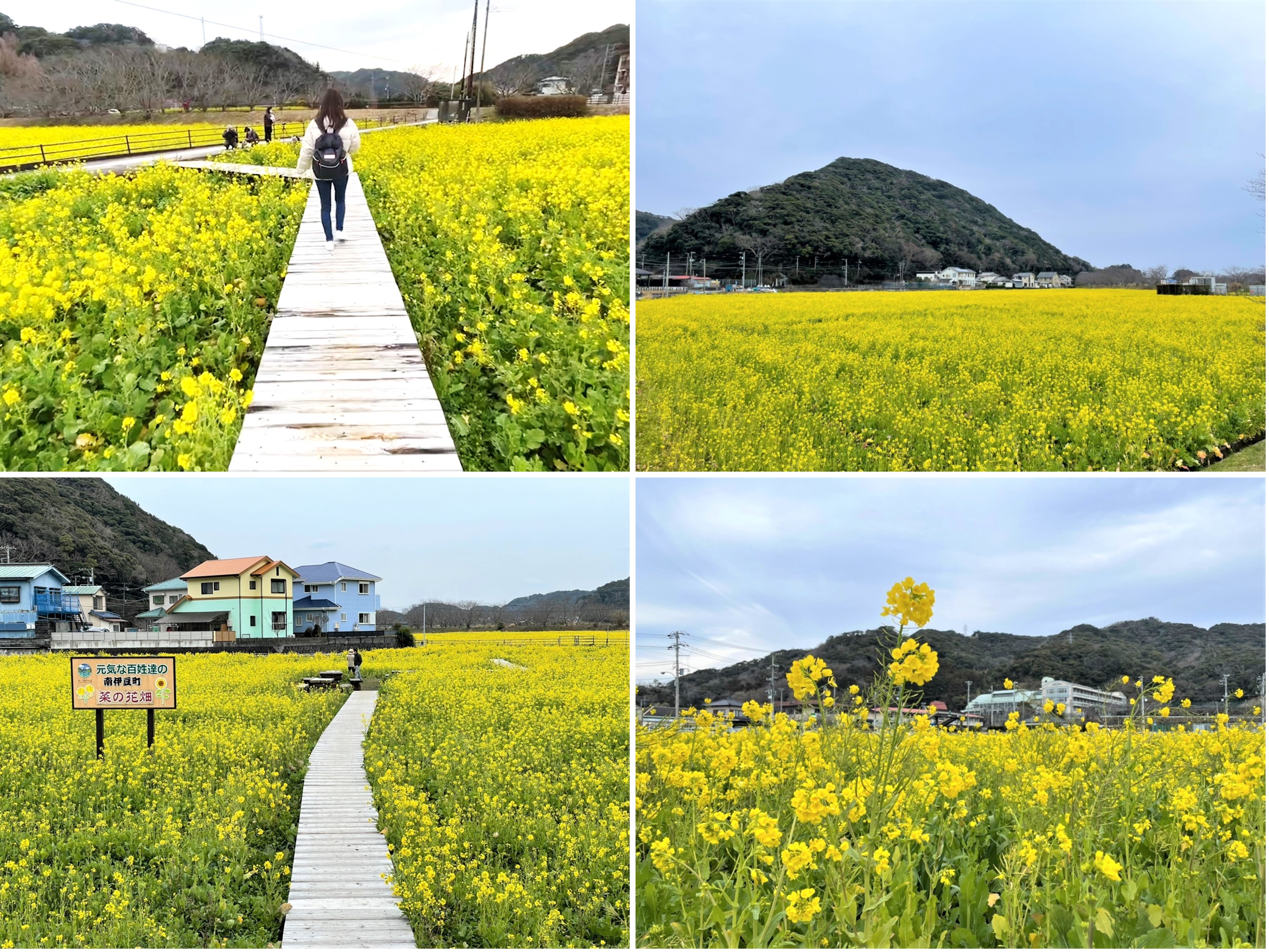 At the festival, Jak and Emmie feasted their eyes on stunning vivid-yellow nanohana that sprawled across the field. They don’t get to see these flowers very often, and it was a rare opportunity for them to be able to see them in February. The peninsula’s mild climate enables visitors to see nanohana early in the year, and visitors to Japan during this period for the winter season can check it out.