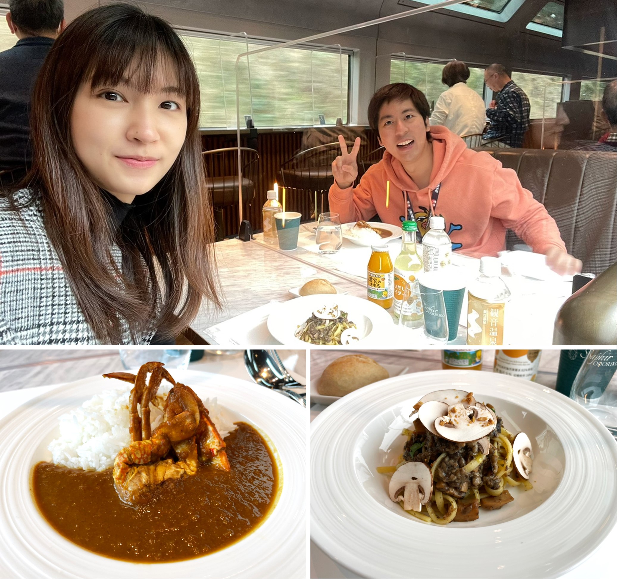 Jak and Emmie know all too well that a train trip wouldn’t be complete without scrumptious food onboard the train! They headed over to the cafeteria in Car 4, where they got to enjoy light meals selected by chef Honda Tetsuya of Ristorante HONDA. The duo feasted on dishes such as the Premium Horse Crab Curry and the Ragout with three varieties of Shizuoka mushroom and truffle salt, which they thought were delectable.