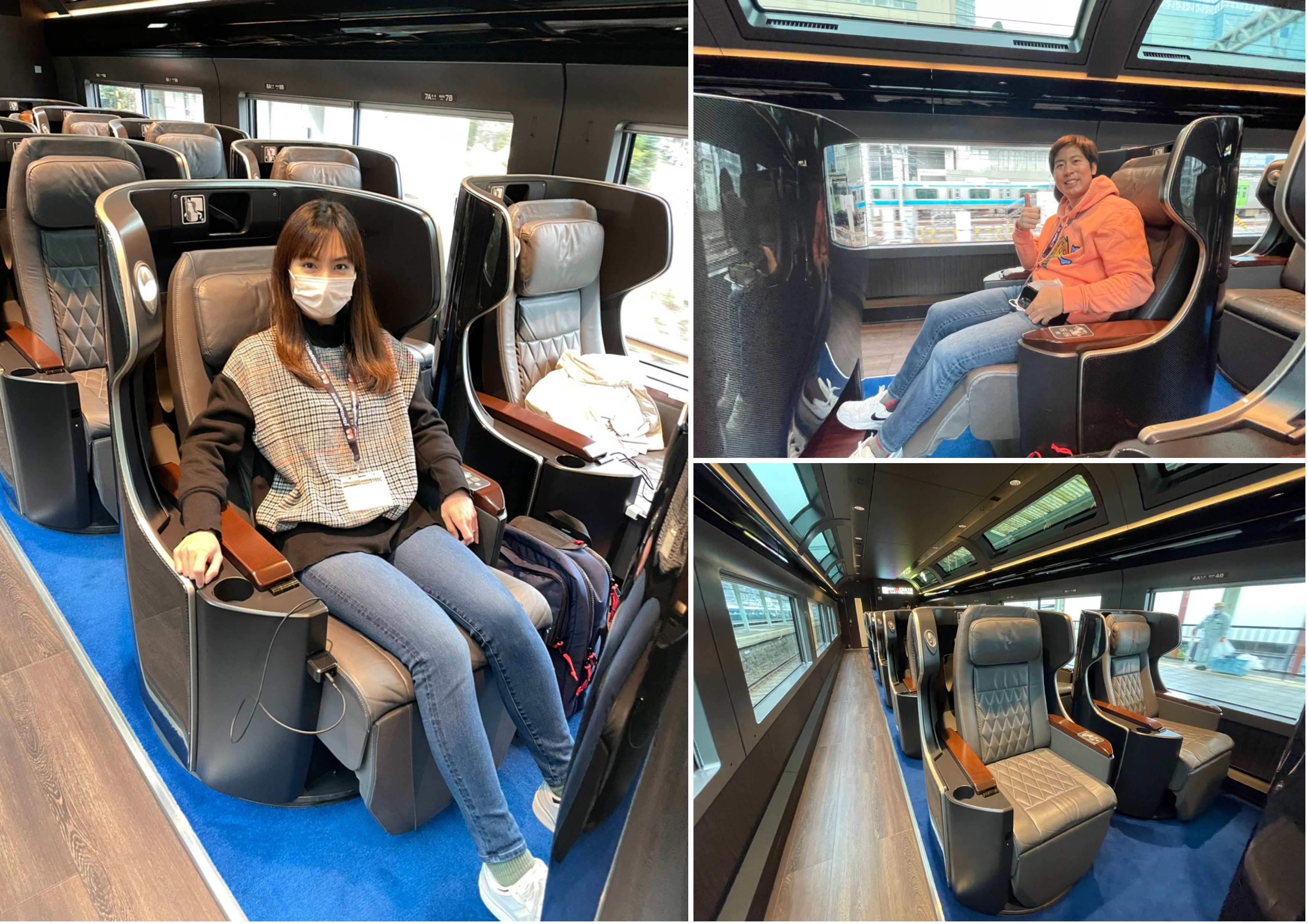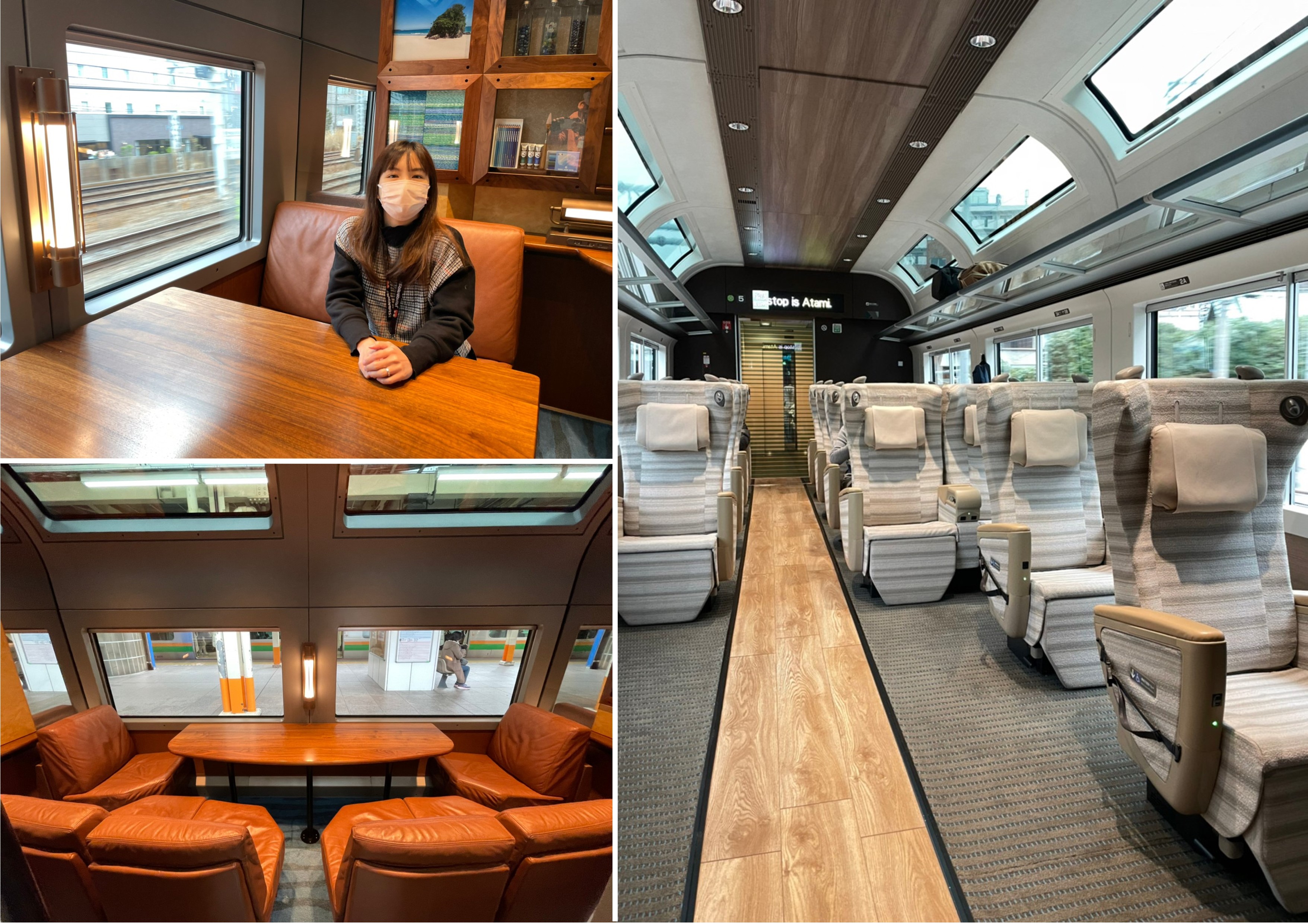 The SAPHIR ODORIKO has eight cars in total, and Car 1 features the special Premium Green Car seats. Jak and Emmie were utterly amazed at the sheer plushness of the seats, which were among the most luxurious they had ever seen onboard a train. With ample leg room and reclining functions, along with various amenities and large windows, the seats offered the duo a comfortable and enjoyable train ride.