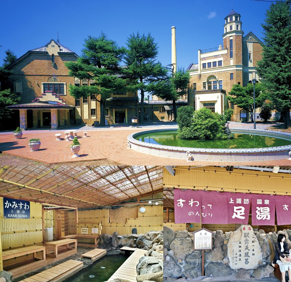 KATAKURAKAN (top) and footbath at JR Kami-Suwa Station (bottom). (Image credit: KATAKURAKAN, JR East / Carissa Loh)