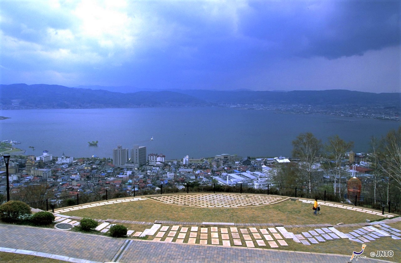 Tateishi Park overlooking Lake Suwa during sunset. (Image credit: photoAC)